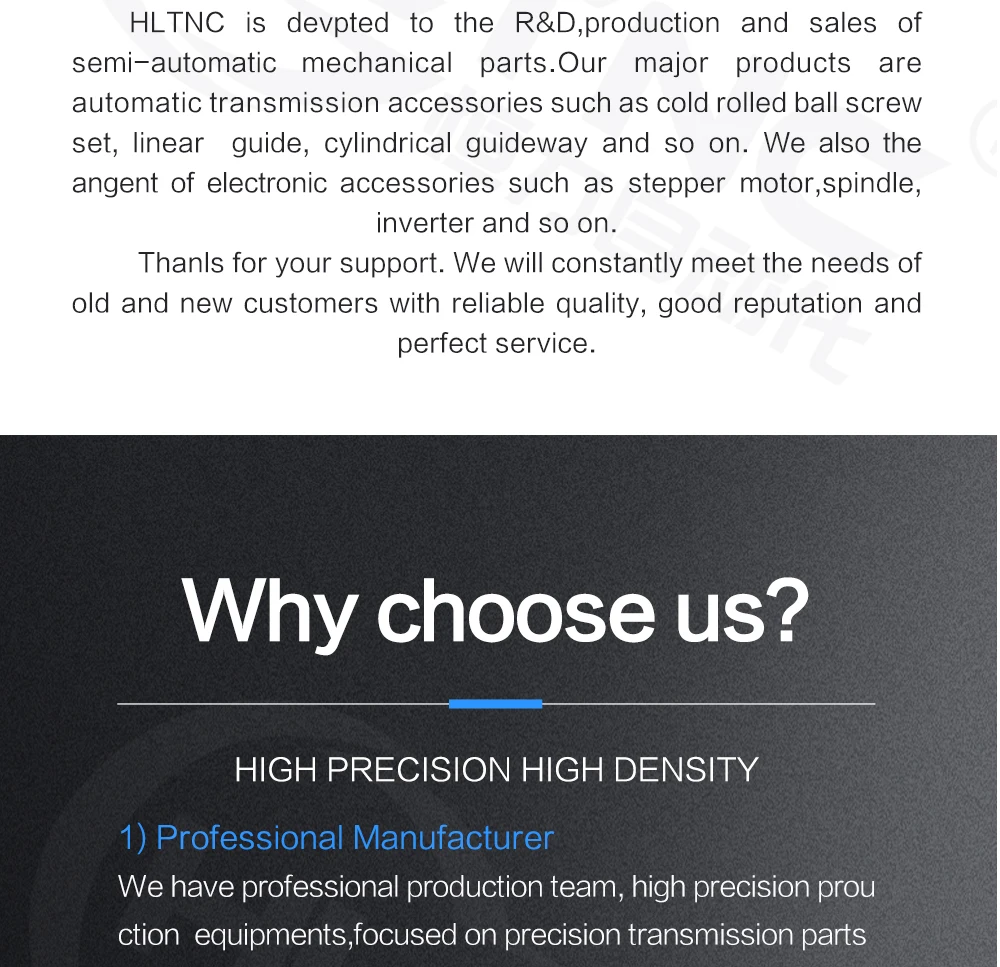 Если вы покупаете наши винты и гайки, вы также можете купить подходящие стальные шарики. Мы предоставим вам стальные шарики с одинаковым допуском, и мы также можем предоставить вам набор уплотнительных колец и разворотов бесплатно.