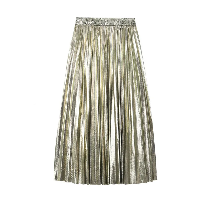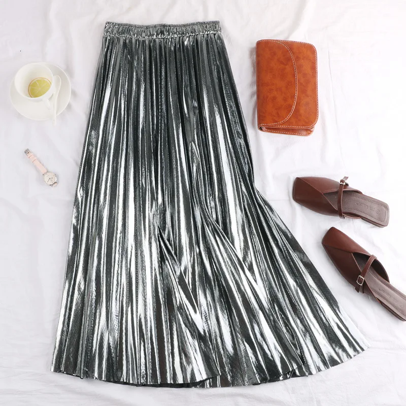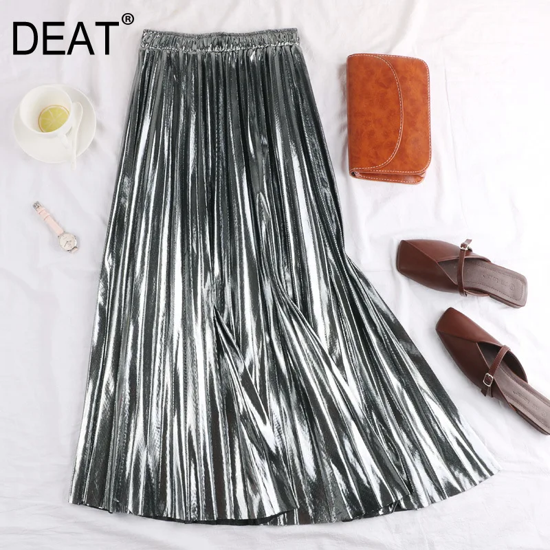 Женская плиссированная юбка DEAT, черная Повседневная плиссированная юбка до середины икры из светоотражающей ткани с металлическим узором, AI519, весна 2021
