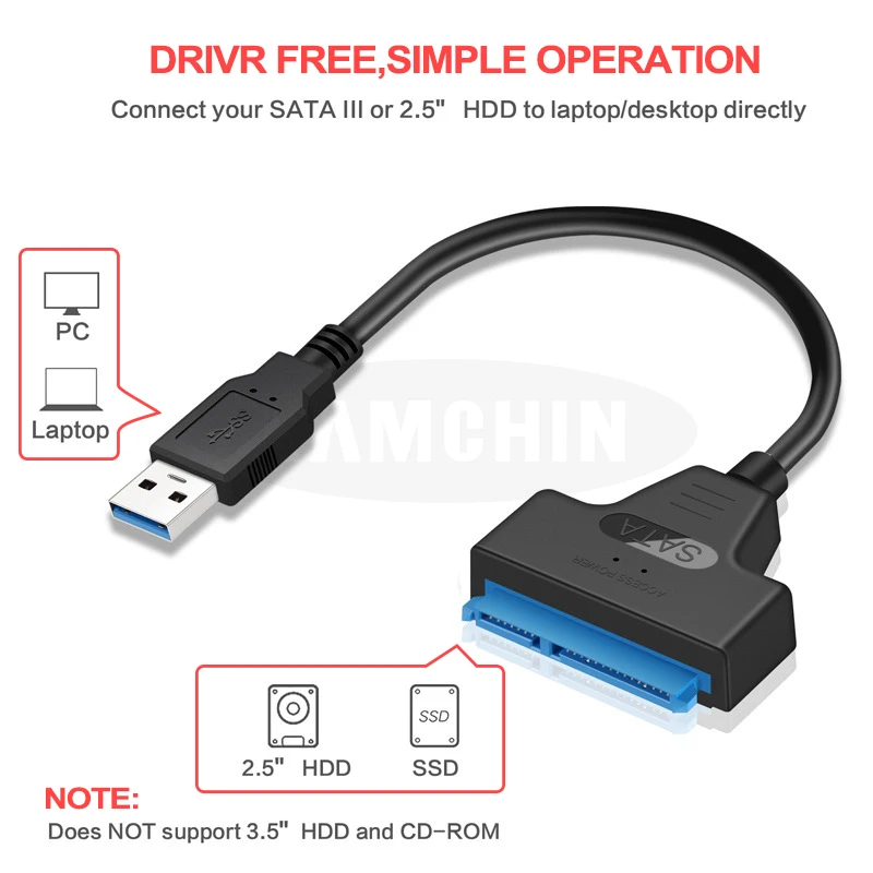 Кабель Sata USB 3,0, адаптер 2,5 дюйма, для внешнего SSD, HDD, жесткого диска, 22-контактный кабель Sata III, адаптер USB Sata 3,0