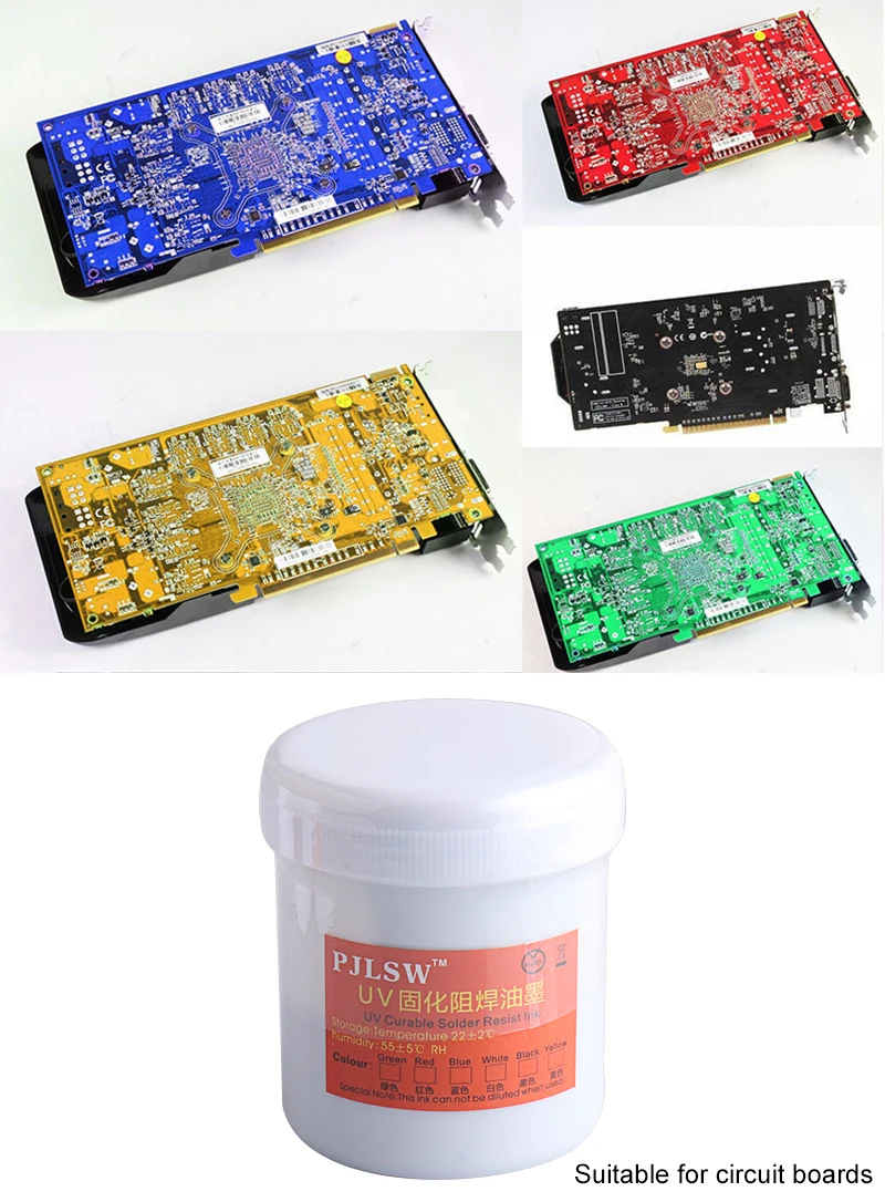 Супер печатная плата УФ Фоточувствительный чернила, зеленый PCB УФ изгибаемый припой устойчивые чернила, маска для припоя УФ чернилаЗеленый, красный, синий, белый, черный, желтый