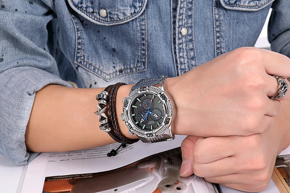 Мы поддерживаем прямую доставку, у нас есть собственная фабрика, товара не будет в наличии, мы можем отправить заказы быстро в течение 1-5 дней, без задержек Категории часов: мужские, мужские Стиль часов: модный роскошный спортивный Военный стиль Циферблат Форма циферблата: круглый Тип механизма: кварцевый Тип дисплея: указатель Браслет Материал ремешка: нержавеющая сталь Тип застежки: застежка для браслета Цвет ремешка: черный, золотой, серебряный Размер: Длина ремешка: 22 см, Диаметр циферблата: 5 см, Толщина циферблата: 1,8 см, Ширина ремешка: 2,6 см