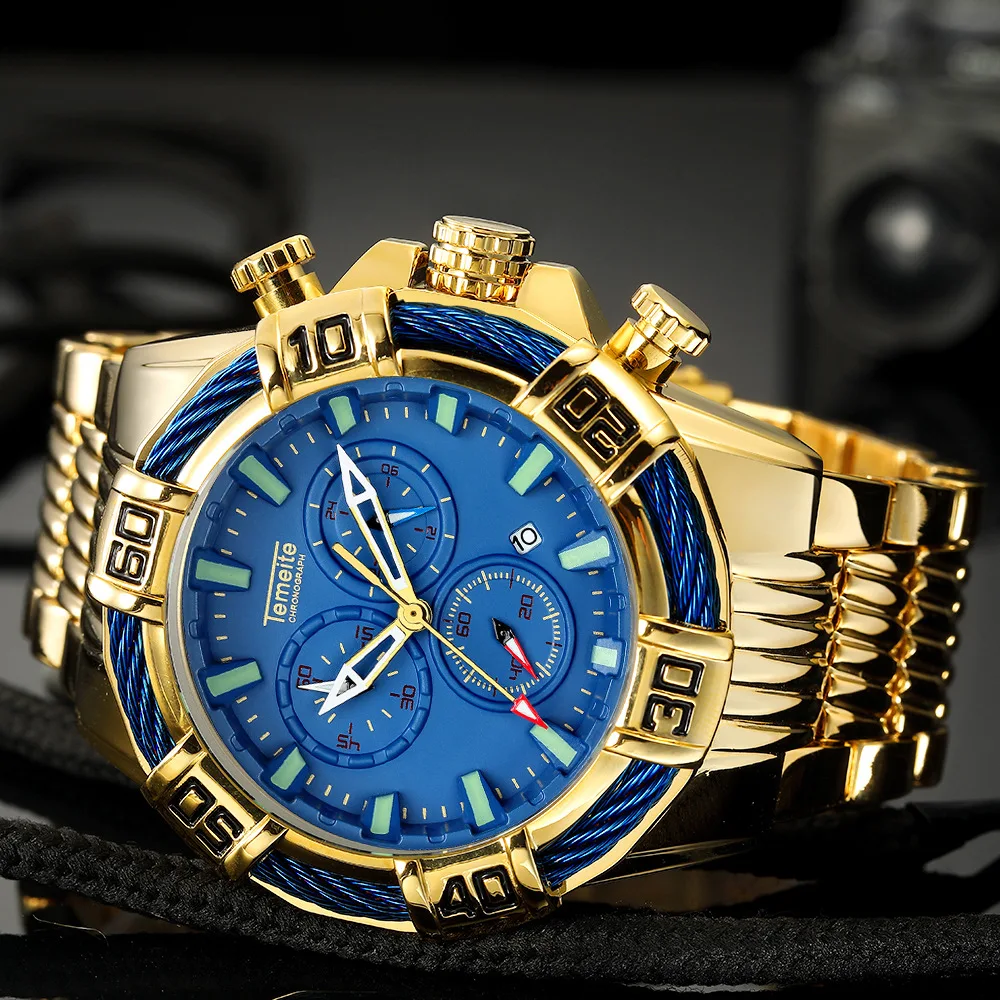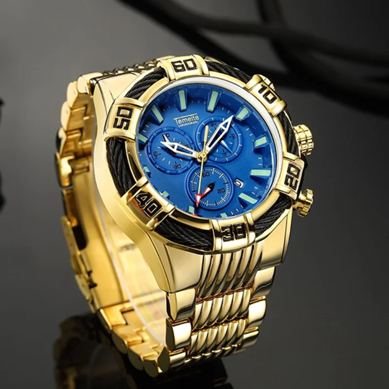Мужские часы Relogio Masculino, спортивные часы с хронографом, мужские часы, лучший бренд класса люкс, полностью стальные мужские часы, водонепроницаемые мужские часы с большим циферблатом