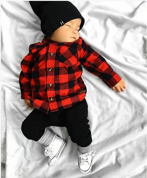 Одежда для маленьких мальчиков и девочек, клетчатая рубашка с длинн...