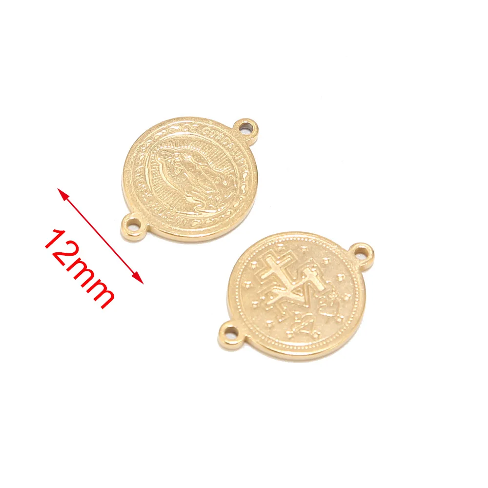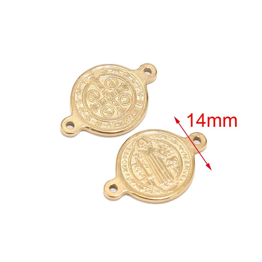 Позолоченный соединитель из нержавеющей стали, медаль святой Бенедикт, Дева Мария, крест, шарм, соединители, католическая церковная медаль, Medallas Catolicas