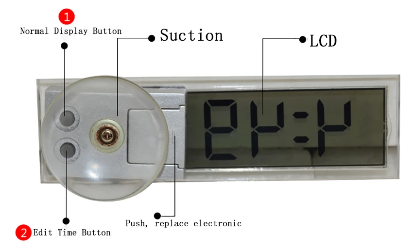 Часы с ЖК-дисплеем на присоске, электронные мини-часы с ЖК-дисплеем, аксессуары для интерьера автомобиля