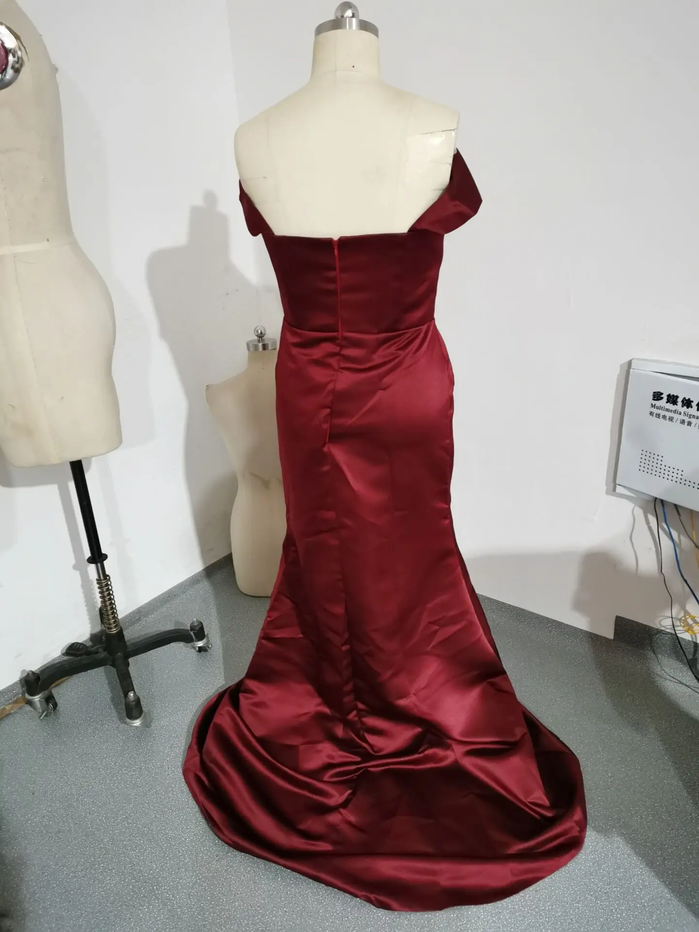 Темно-красное платье подружки невесты в африканском стиле, длинное атласное вечернее платье с открытыми плечами для гостей на свадьбе