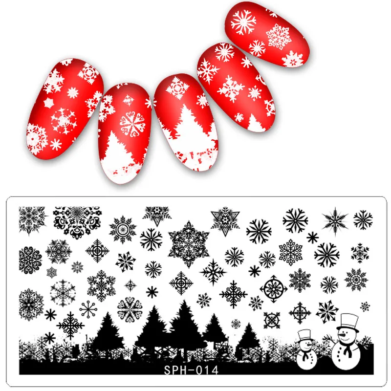 Трафарет для стемпинга ногтей, снежинка, рождественская елка, Лось
