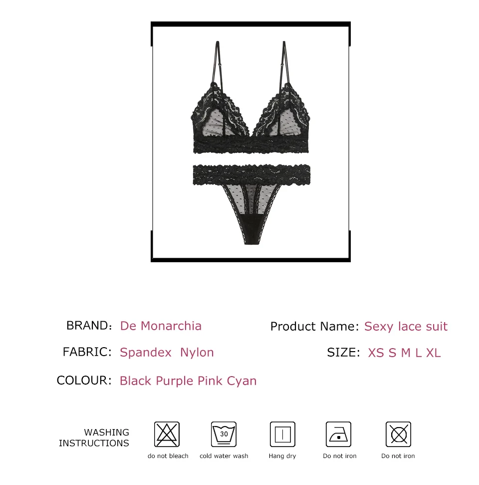 Новый сексуальный женский кружевной сетчатый бюстгальтер , комплект пуш-ап бюстгальтера + трусики с открытой спиной, v-образный вырез, Женский комплект нижнего прозрачный бюстгальтер в горошек комплект нижнего белья