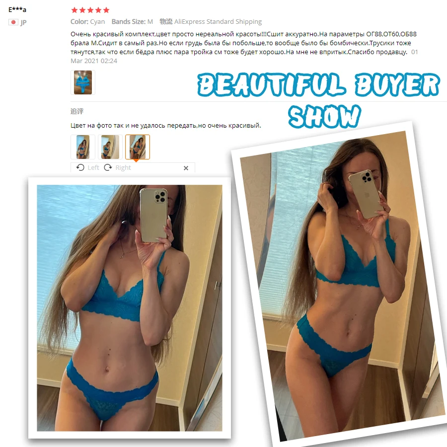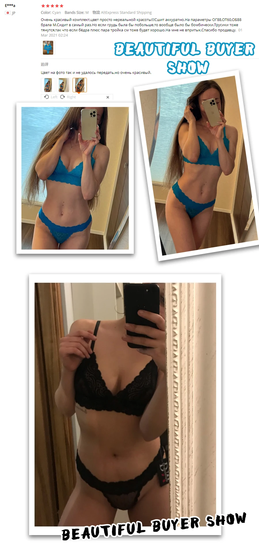 Спасибо ! Все супер ! Качество прекрасное , мягкое кружево ! Размер L, на русский 44-46, грудь 75с в самый раз !