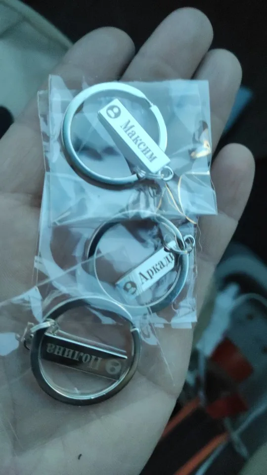 Выгравировали очень быстро, отправили тоже. Брала 8 брелков. На таможне тормознули, потребовали скан паспорта. Сделала ватермарку на весь разворот скана "для таможни", отправила, приняли, посылку пропустили. Может, кому-то поможет мой опыт)) сами брелоки приятные, края не острые, размер маленький, номер читаем, кольцо очень прочное. Закажу ещё без колебаний, если понадобится