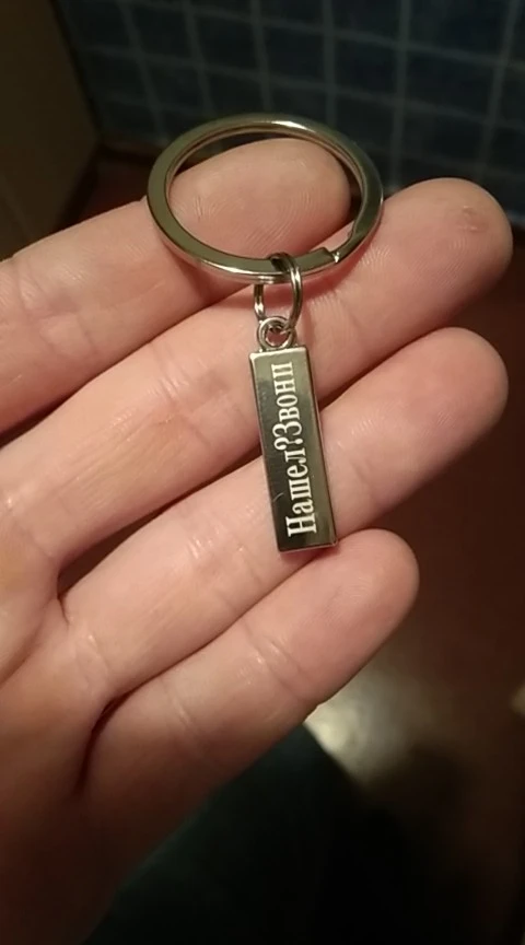 Всё отлично,две недели до Орла.Аккуратно и качество.Из минусов-небольшая глубина гравировки(в будущем на большой связке ключей может исцарапаться до нечитаемости). Размеры тоже маленькие,но это и очень большой плюс-нечего на связку лишнюю большую хрень вешать.Кольцо крупное и качественное,трудно найти такое,когда вдруг захочешь.Короче,можно и у нас это всё сделать-найти заготовку,отнести к гравировщику,но явно выйдет дороже(я брал за 90 этот).Рекомендую,советую.