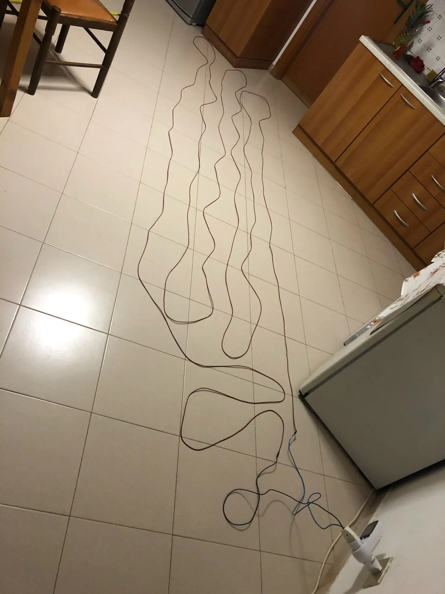 Отрежьте 18 метров длиной до 83 Вт, отдыхая на полу, чтобы проверить, значительно увеличивает температуру того же самого, сделали несколько обнаружений с термометром, температура остается на 23 °, в то время как области без кабеля продолжать остыть, Заключительный тест проводился с кошкой, которая на самом деле установила эффект для эффективности продукта, отлично, достаточно, чтобы покрыть весь пол дома!