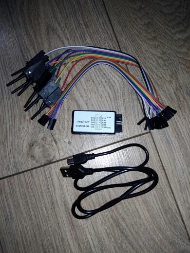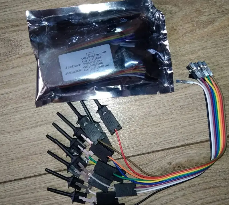 Доставка 30 дней в Алтайский край. Заказ пришёл в большой упаковке вместе с другими заказами. Анализатор рабочий, программа подходит от оригинального Saleae. Рекомендую устанавливать версию 2, там функционал шире.