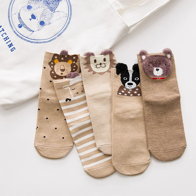 Носки женские хлопковые в стиле Харадзюку, повседневные милые с 3D рисунком животных, кота, собака, единорог, подарок для девушек, 5 пар, зима
