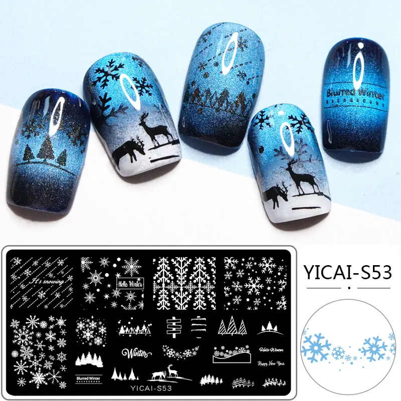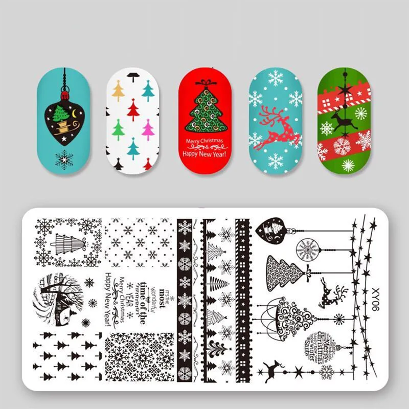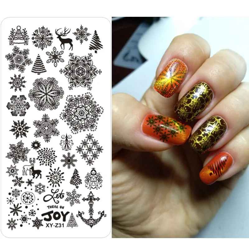 Пластины для стемпинга ногтей Рождественские снежинки Лось колокольчик Санта Клаус зимний штамп для дизайна ногтей Шаблон трафарет инструмент для маникюра