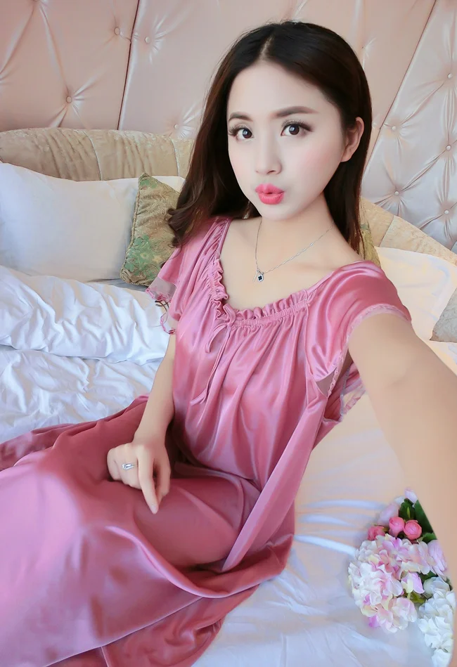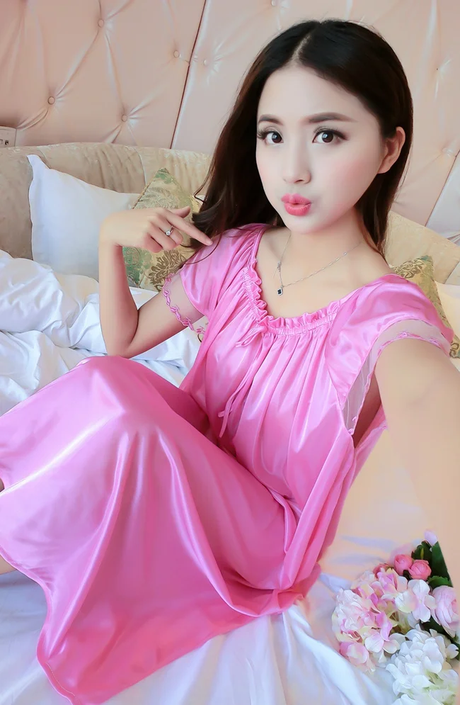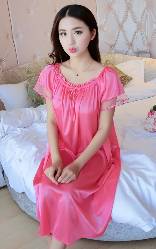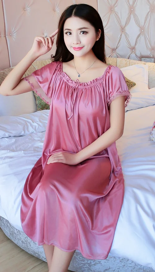 Ночная сорочка женская в стиле оверсайз с круглым вырезом, атласная, с коротким рукавом, шелковая, ночная сорочка, нижнее белье, 6XL, ночная рубашка, пикантная Пижама