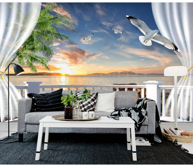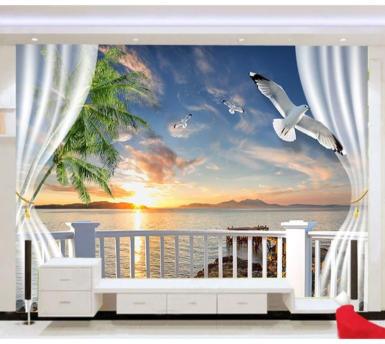 Пользовательские 3D Настенные обои закат снаружи окна декоративная настенная живопись в китайском стиле гостиная спальня фон фото