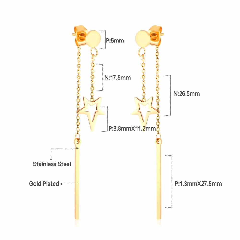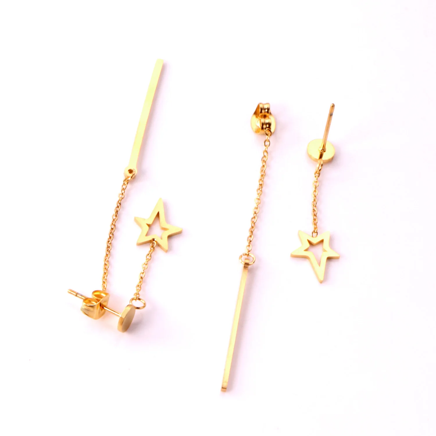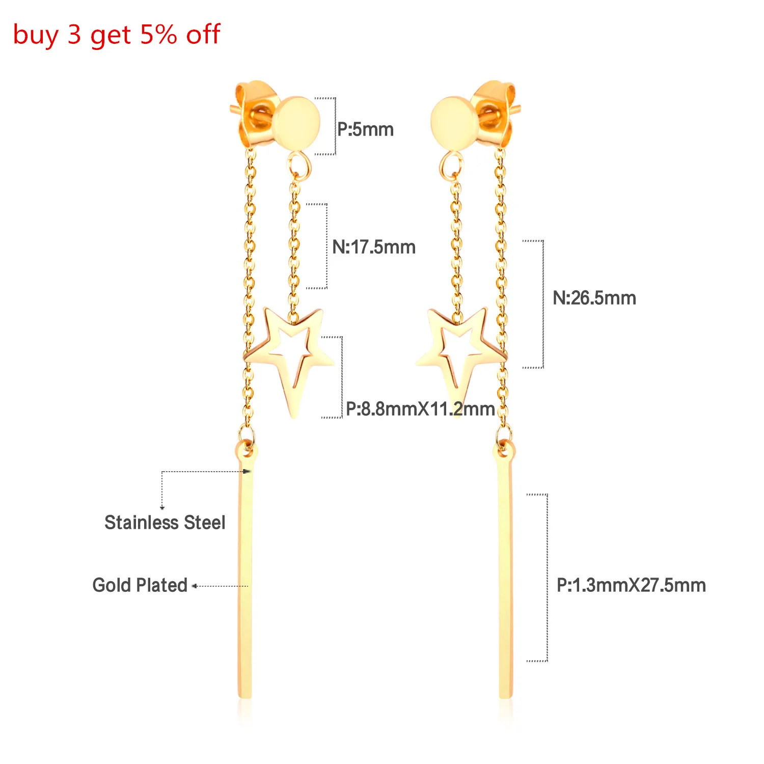 LUXUKISSKIDS Золотая капля звезда Двухсторонние серьги длинные серьги из нержавеющей стали модные ювелирные изделия корейские серьги набор для женщин