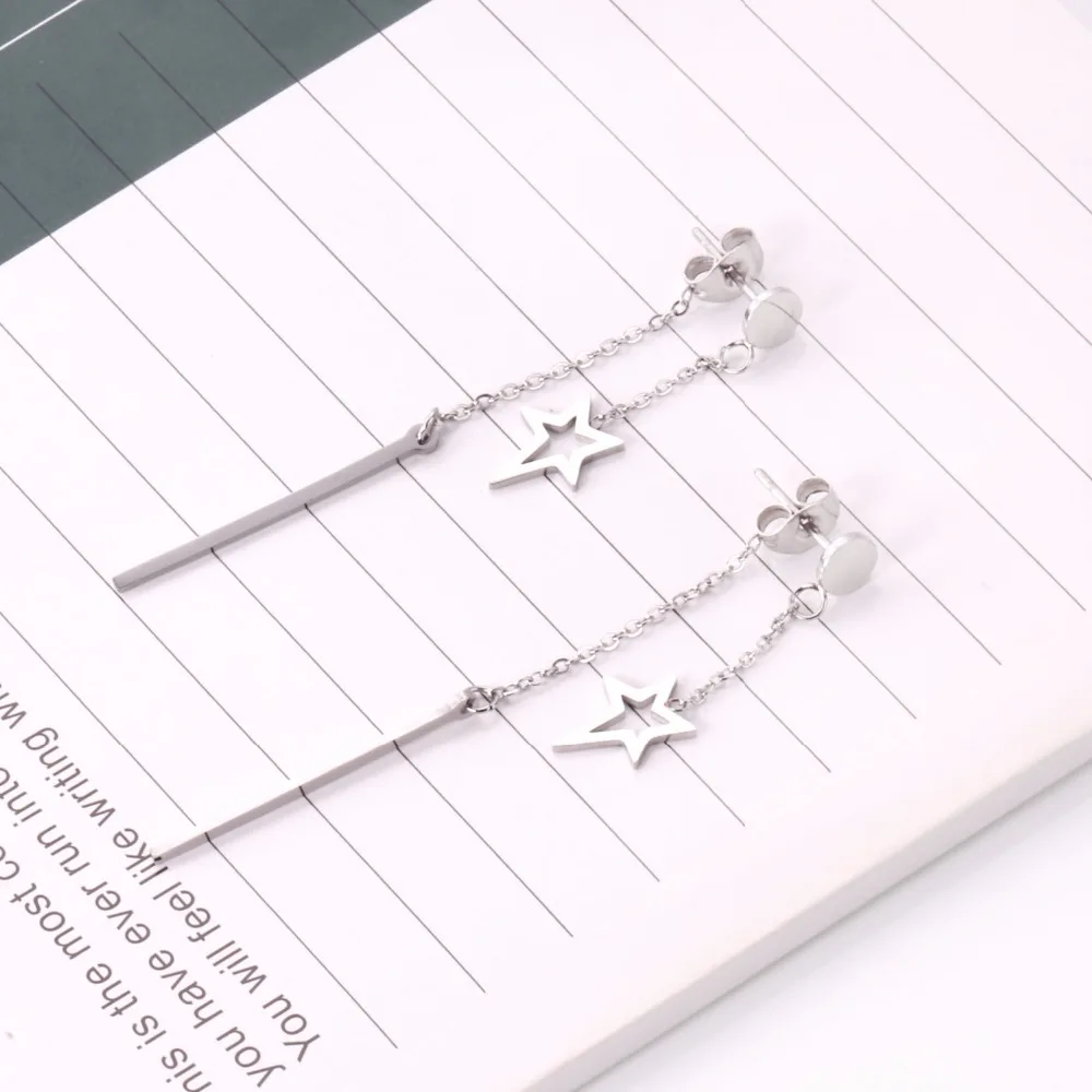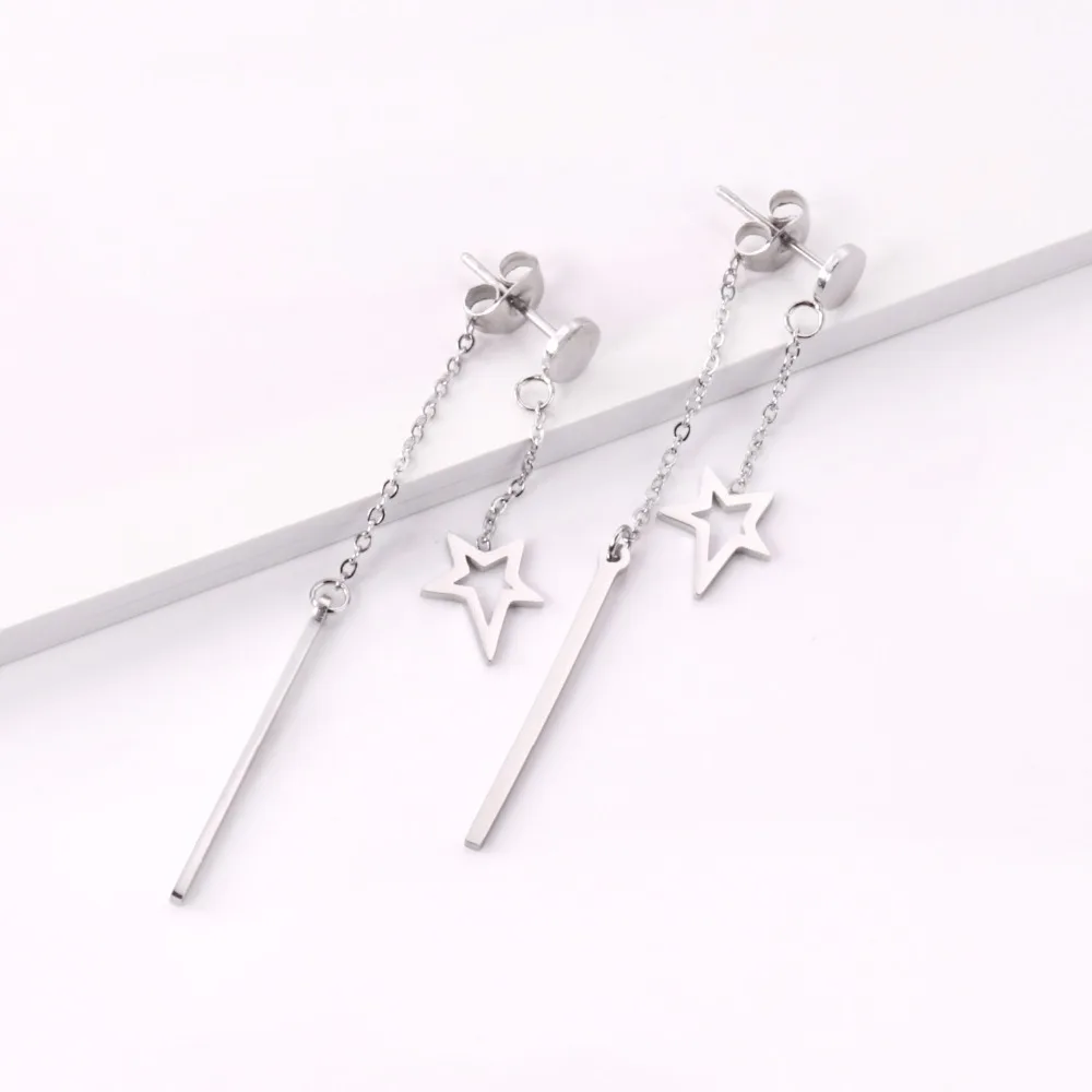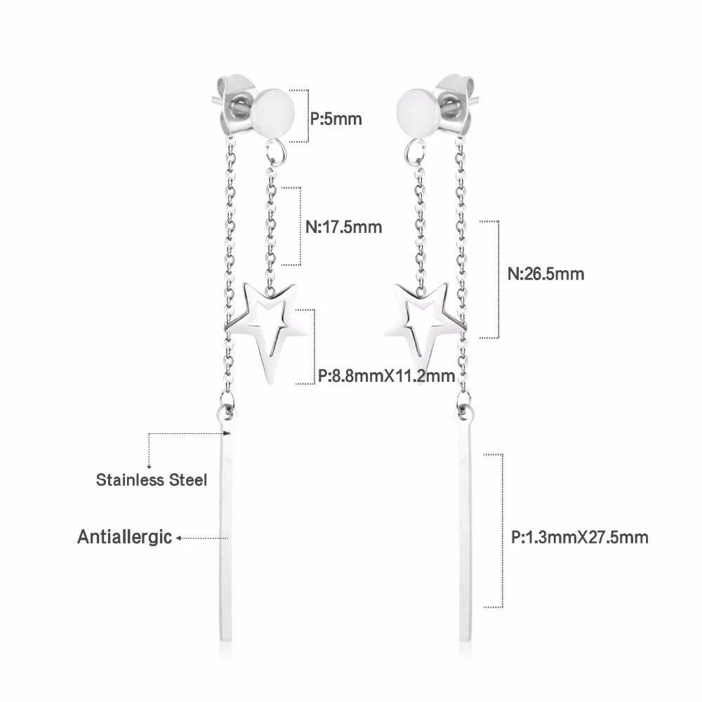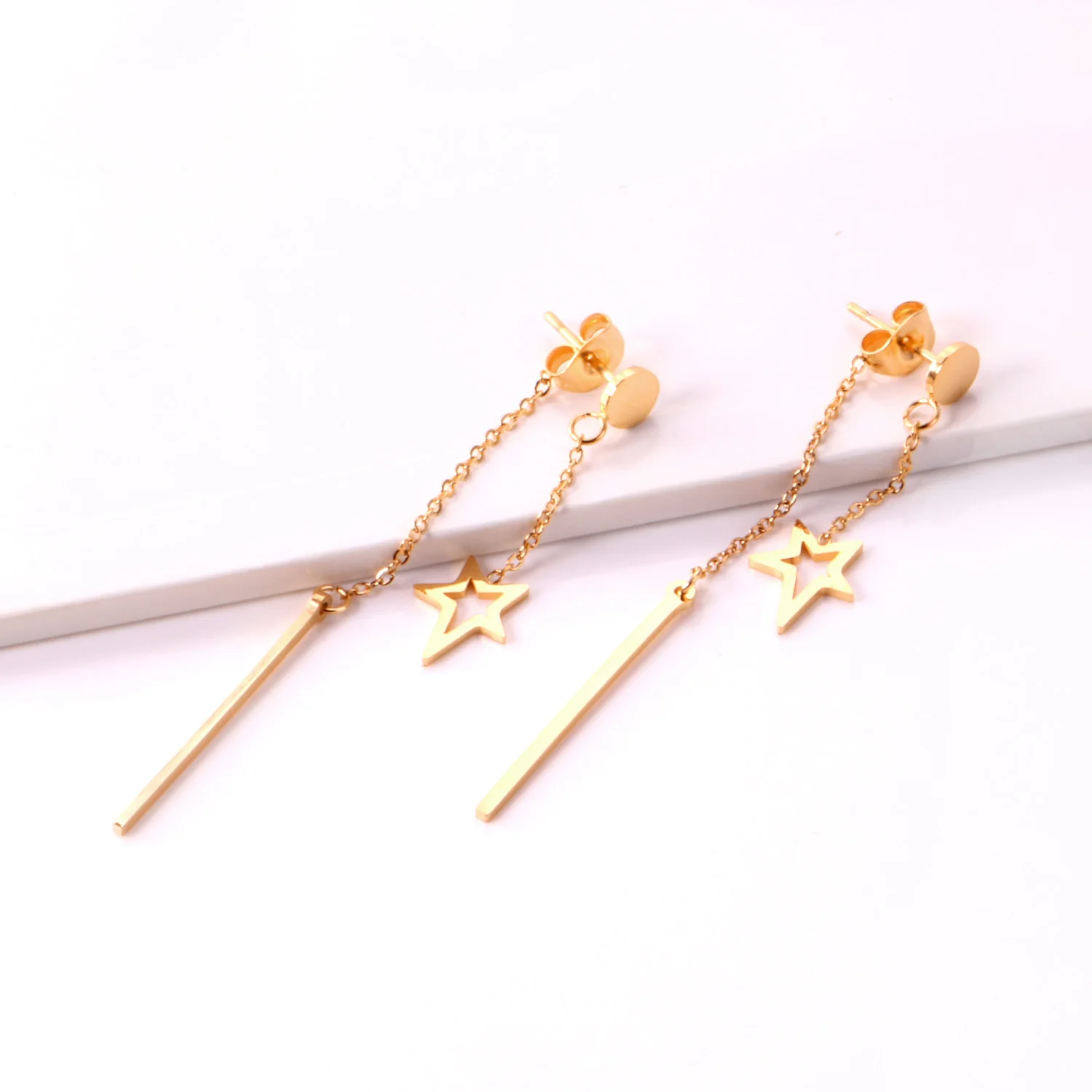 LUXUKISSKIDS Золотая капля звезда Двухсторонние серьги длинные серьги из нержавеющей стали модные ювелирные изделия корейские серьги набор для женщин