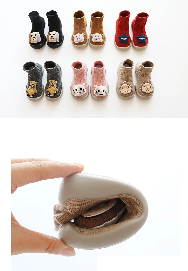Детская обувь на резиновой подошве; Теплая обувь для маленьких девочек; Тапочки для малышей; Вязаные ботиночки для малышей; Обувь с мягкой подошвой с мультяшными животными