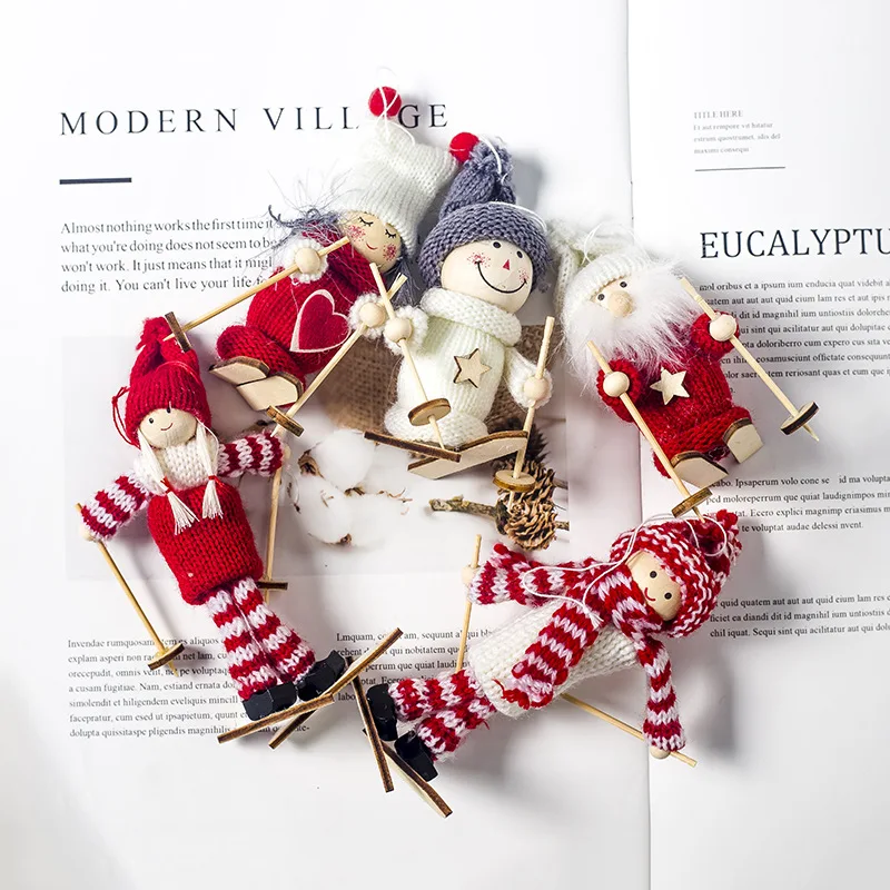 1 шт./милый ангел кукольный лыжный кулон Рождественская елка украшения для дома Деревянная Рождественская елка украшения Рождественский подарок для детей