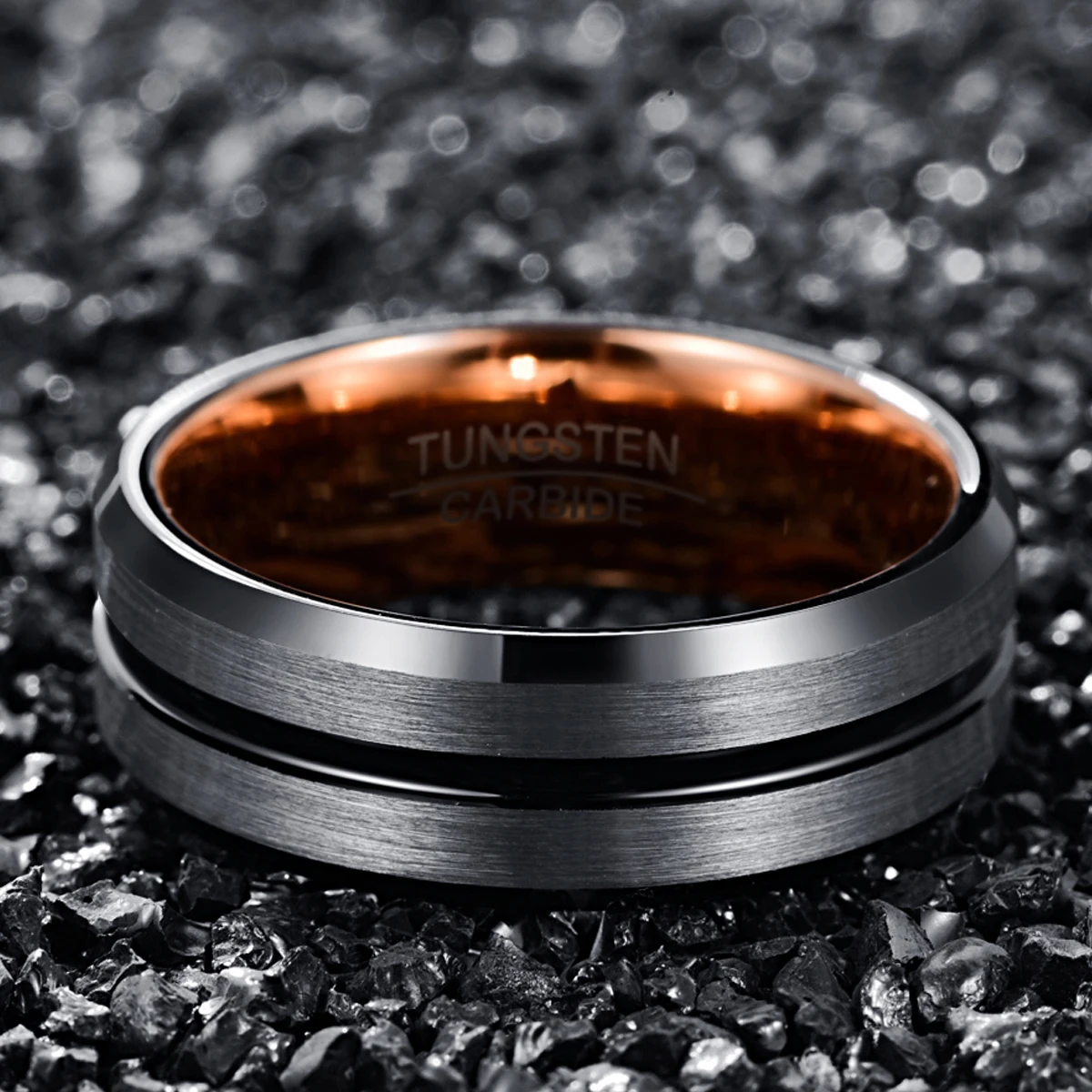 NUNCAD 8 мм вольфрамовое твердосплавное кольцо с гальваническим покрытием Розовое золото внутреннее кольцо + черный скос паз/сталь матовая поверхность вольфрамовое стальное кольцо