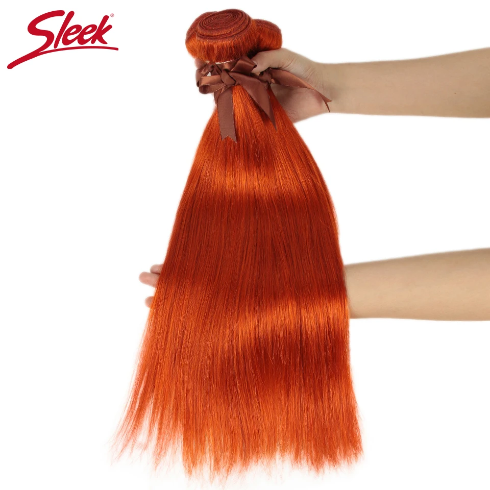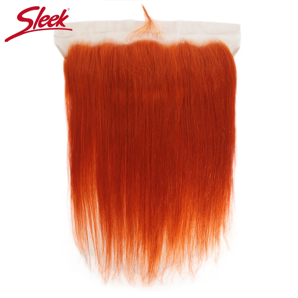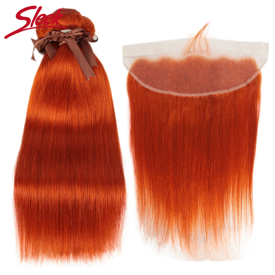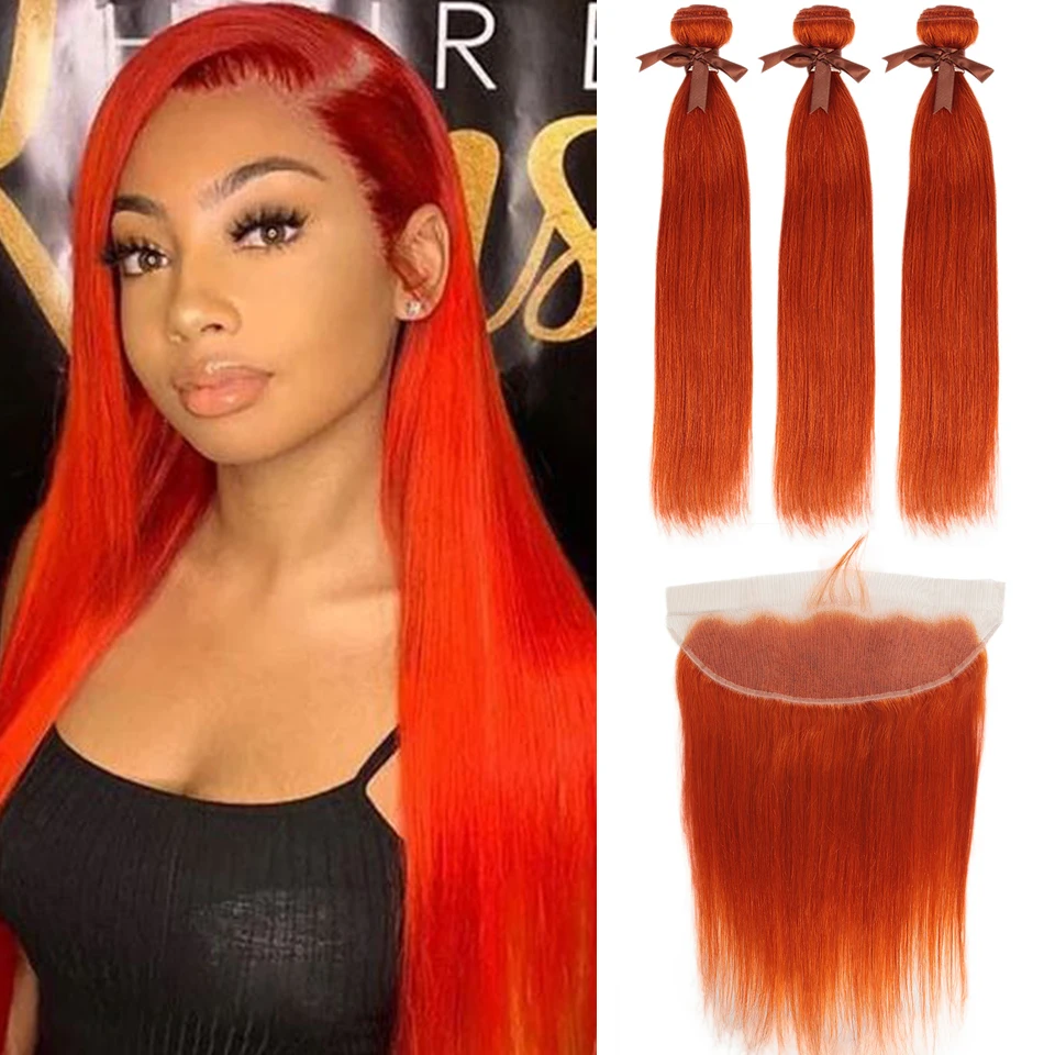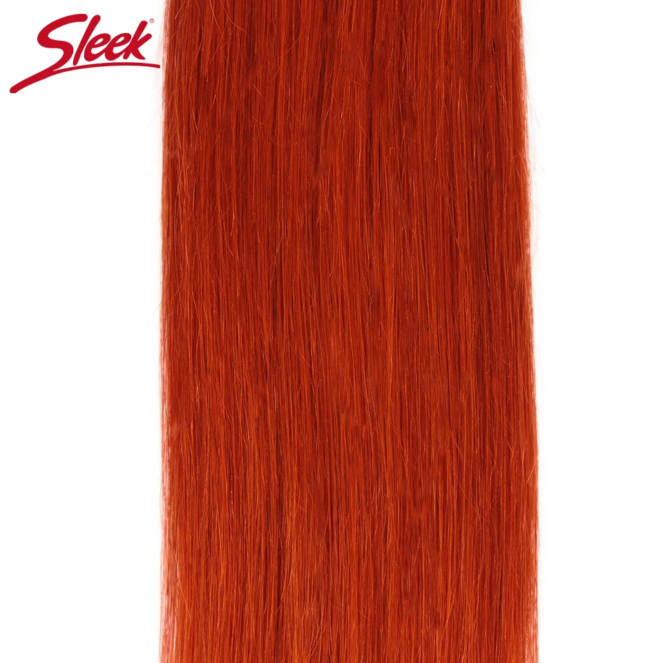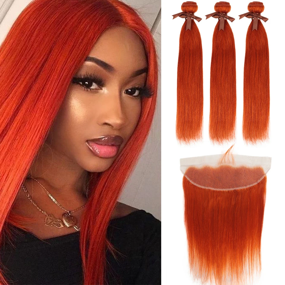 Гладкие оранжевые бразильские пряди с фронтальной прямой сеткой спереди с прядями 8-28 человеческих волос Реми, 3 пряди с застежкой