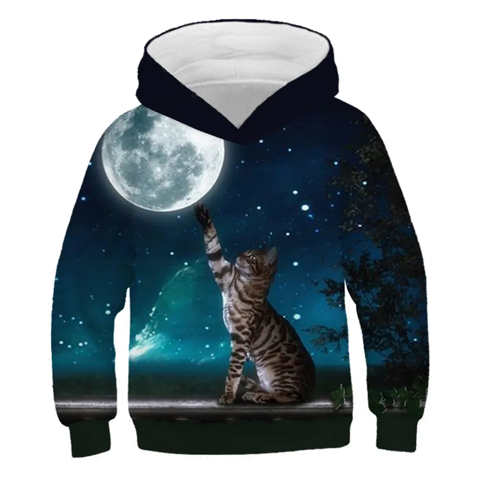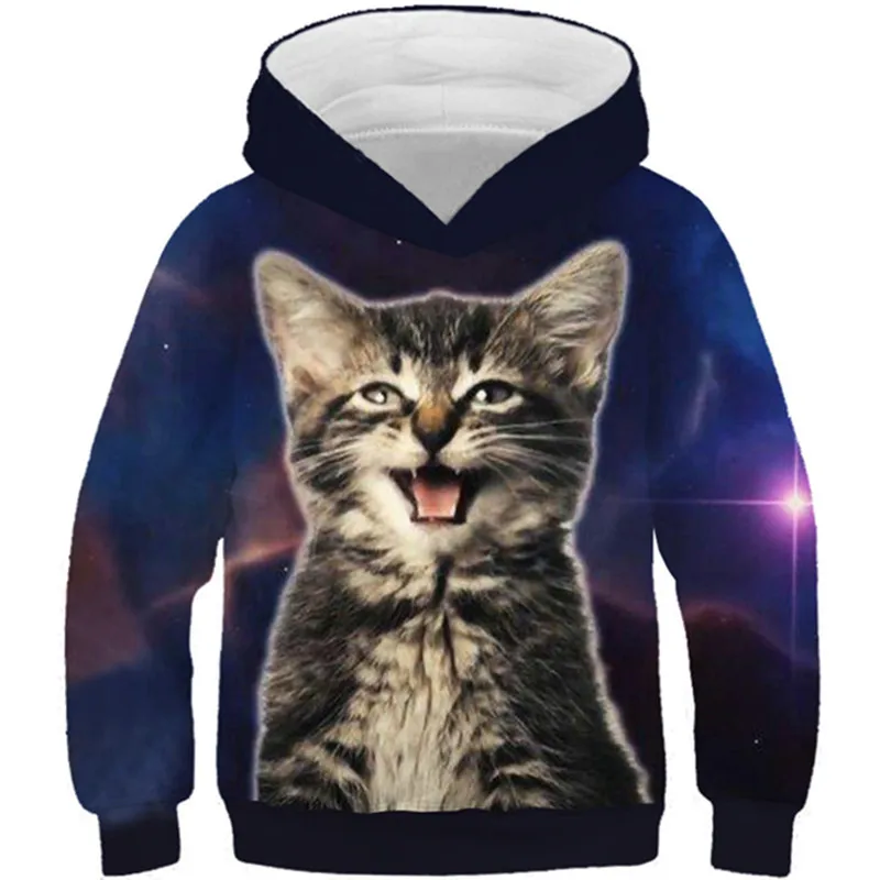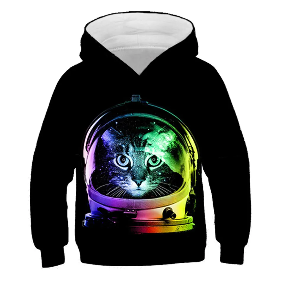 Детские Красочные объемные толстовки с рисунком космоса, галактики, милые животные, кот, луна, рыбы, свитшоты для мальчиков и девочек, детские пуловеры, топы