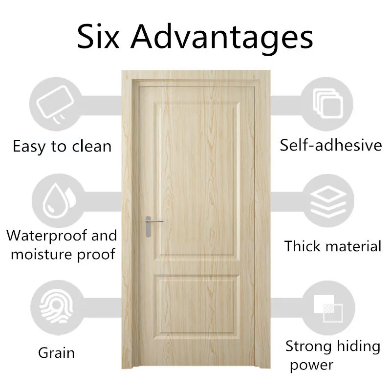 Note: This is an imitation wood-grain sticker with a smooth surface, without any engraved patterns on the surface, all patterns are the patterns of the door itself.