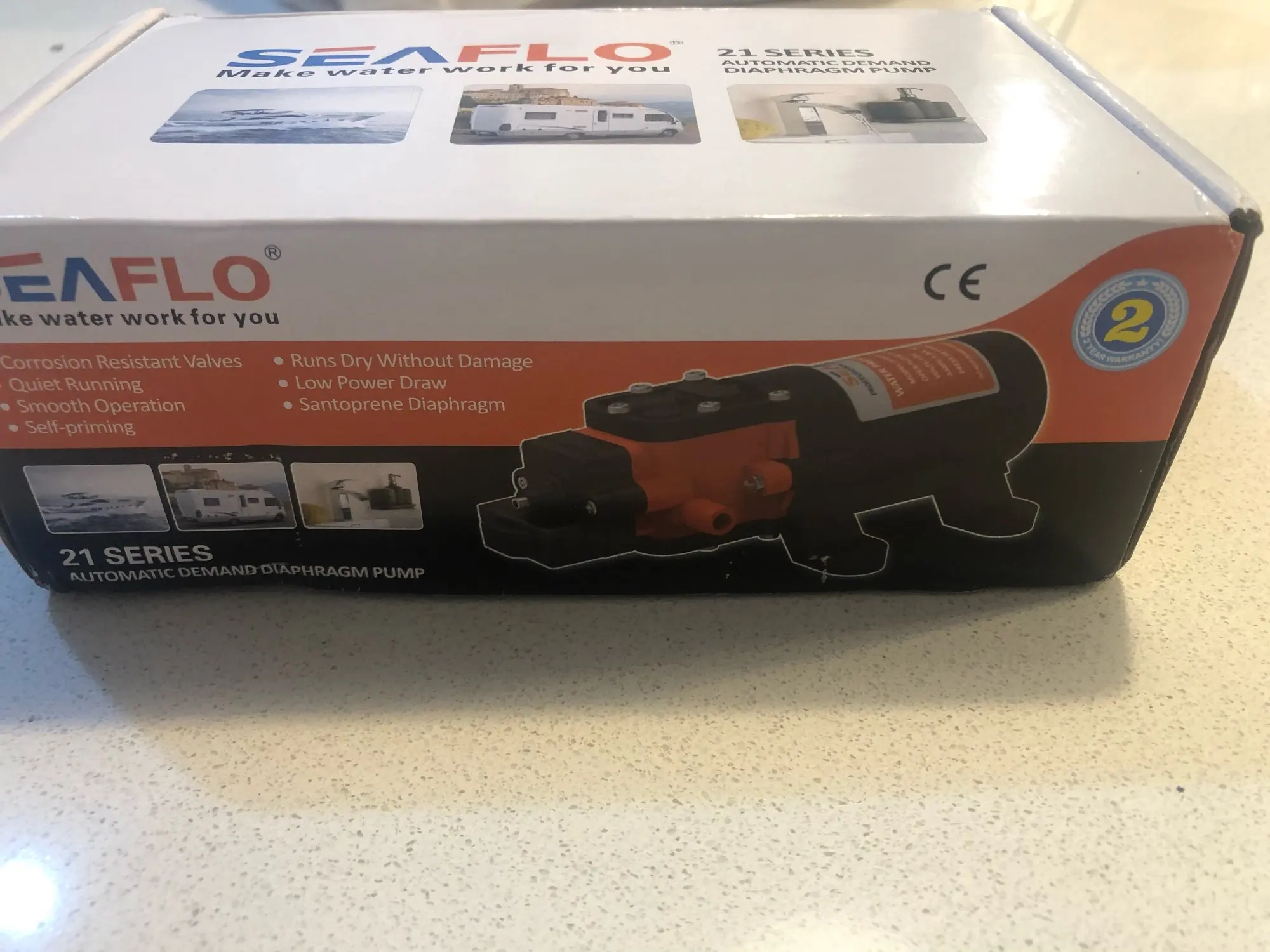 До МО 17 дней, отправка оперативная. Упакован был в пупырку и бумагу, поэтому заводскую коробку помяли. По скорости 5 литров за 1 мин 20 сек. Меня вполне устраивает. Довольно сильно вибрирует, явно нужно крепить на антивибрационную подставку. Магазин рекомендую.