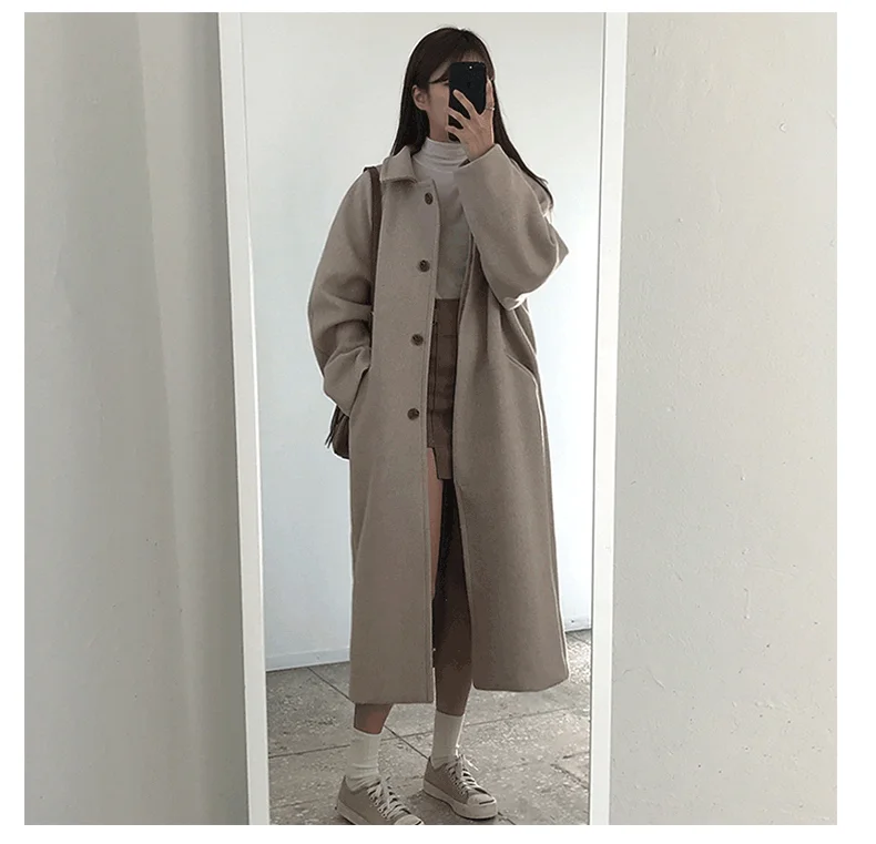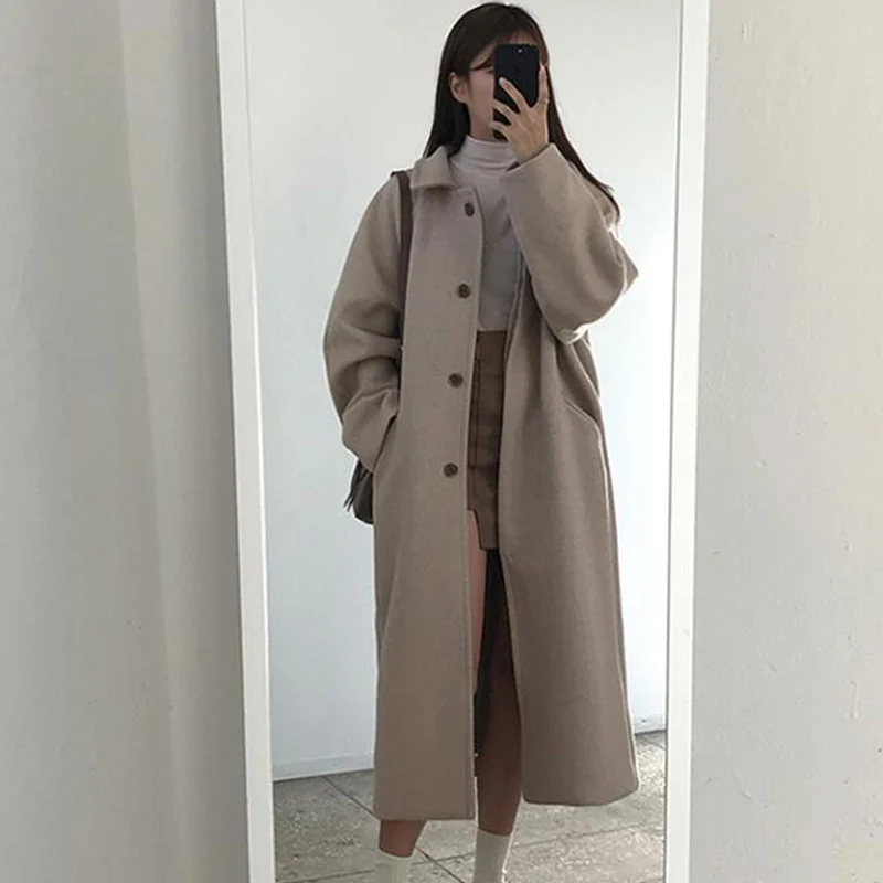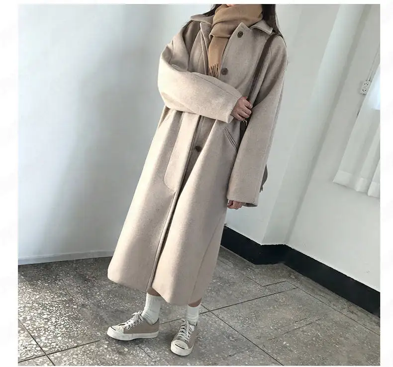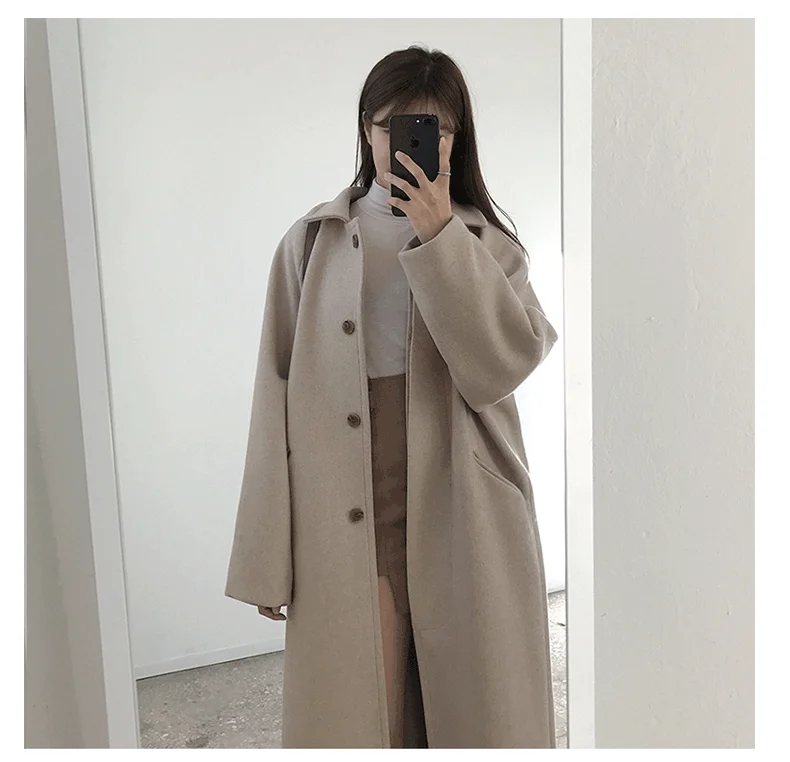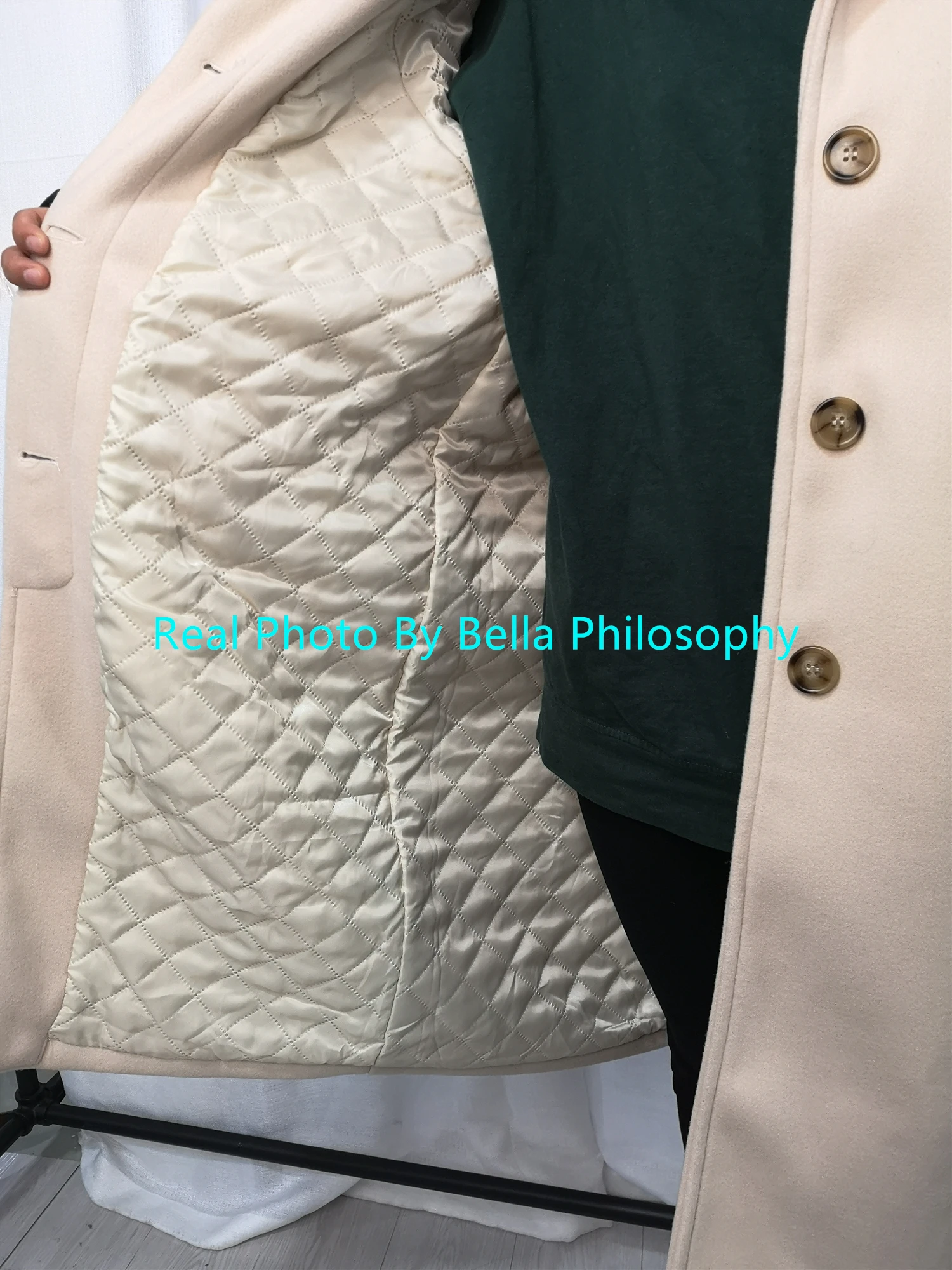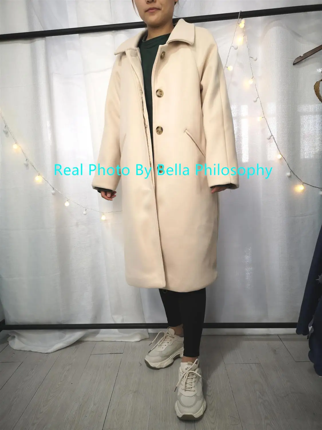 Женское шерстяное пальто Bella philosophy, простое однобортное пальто с отложным воротником, длинное, для отдыха, для осени и зимы, 2021