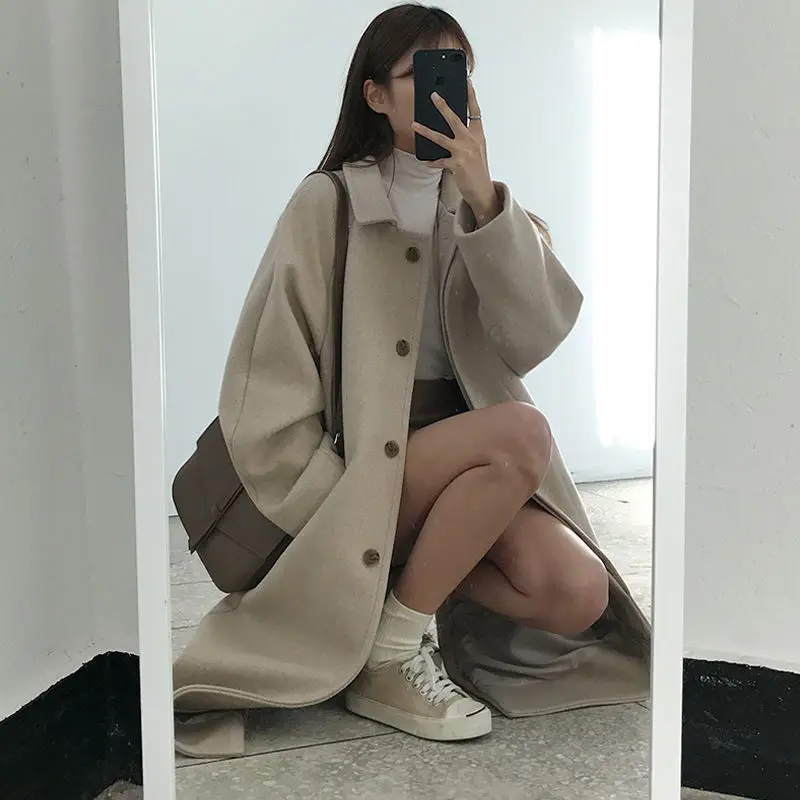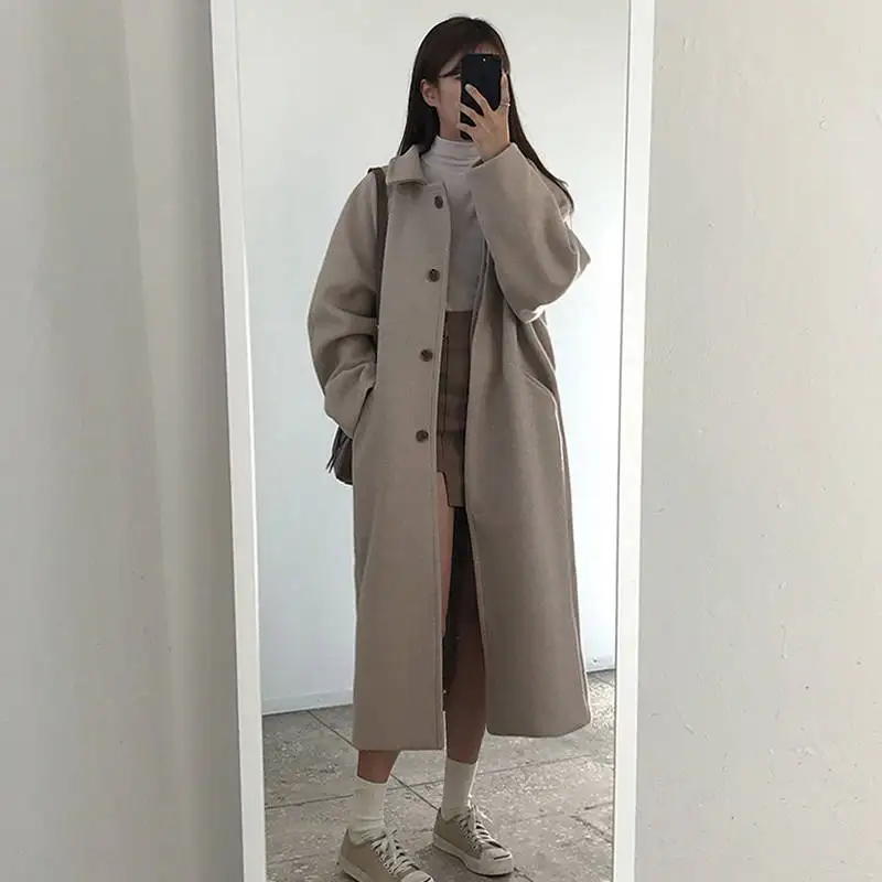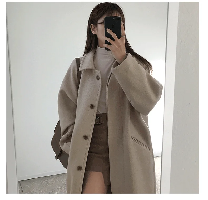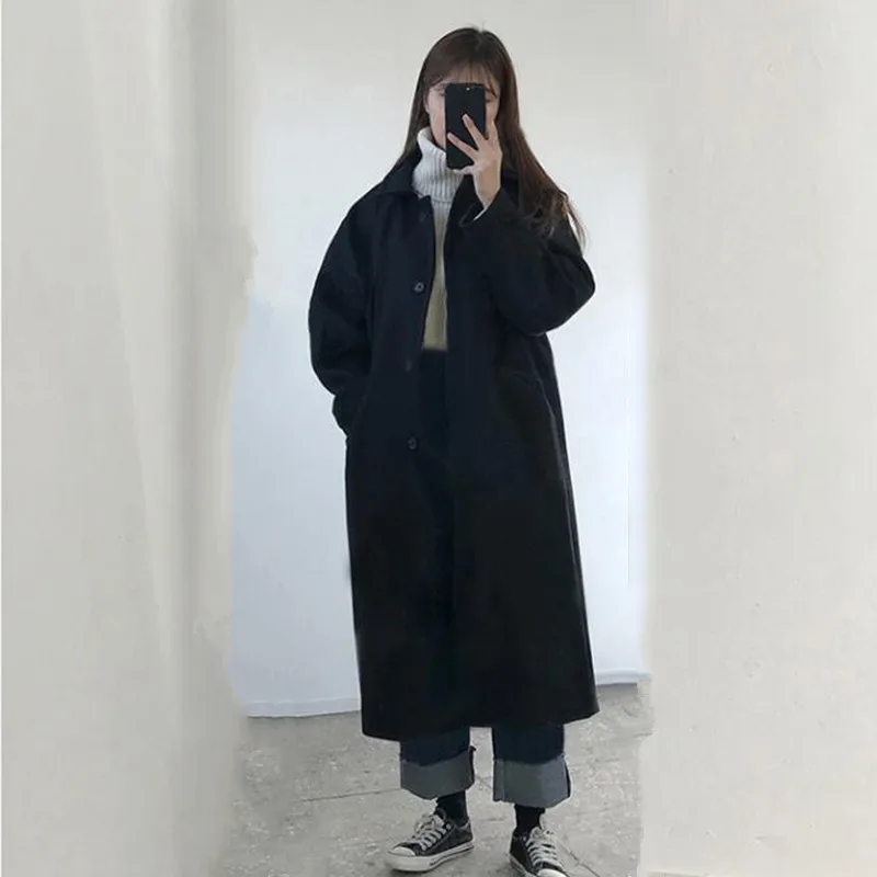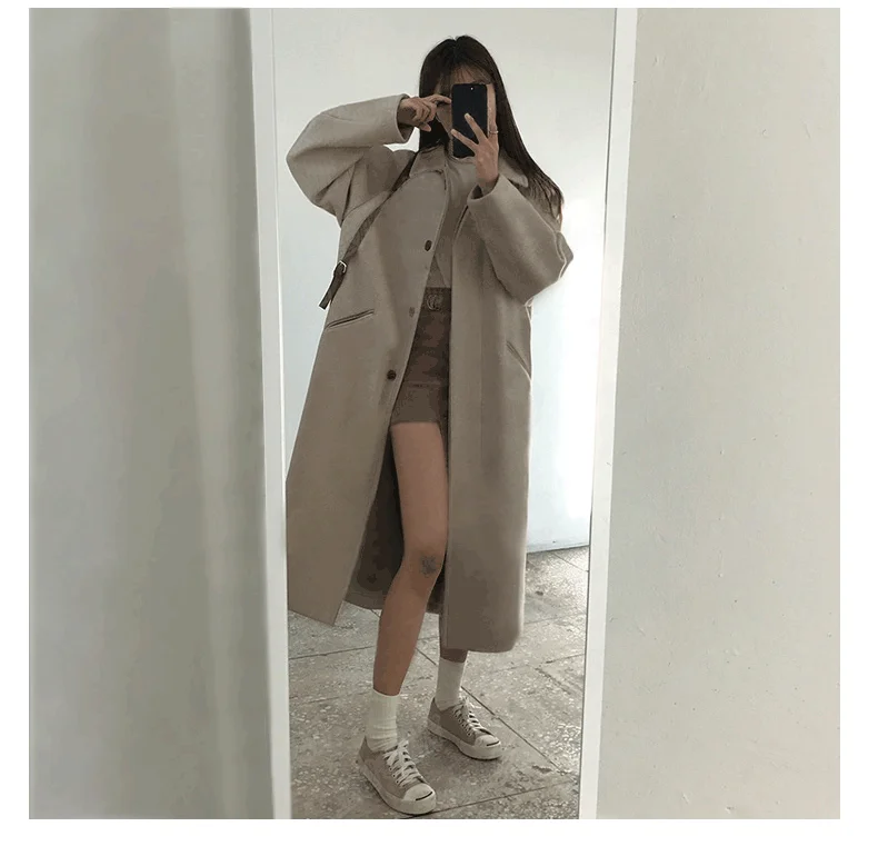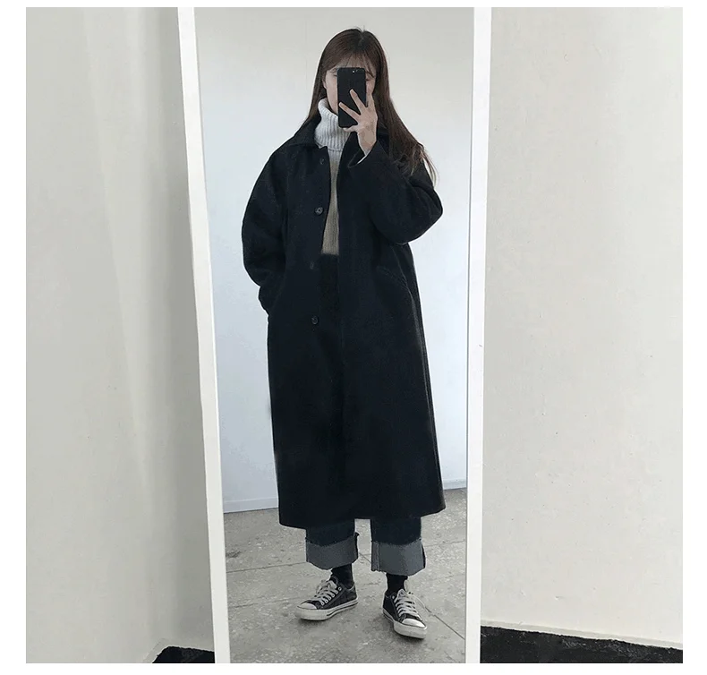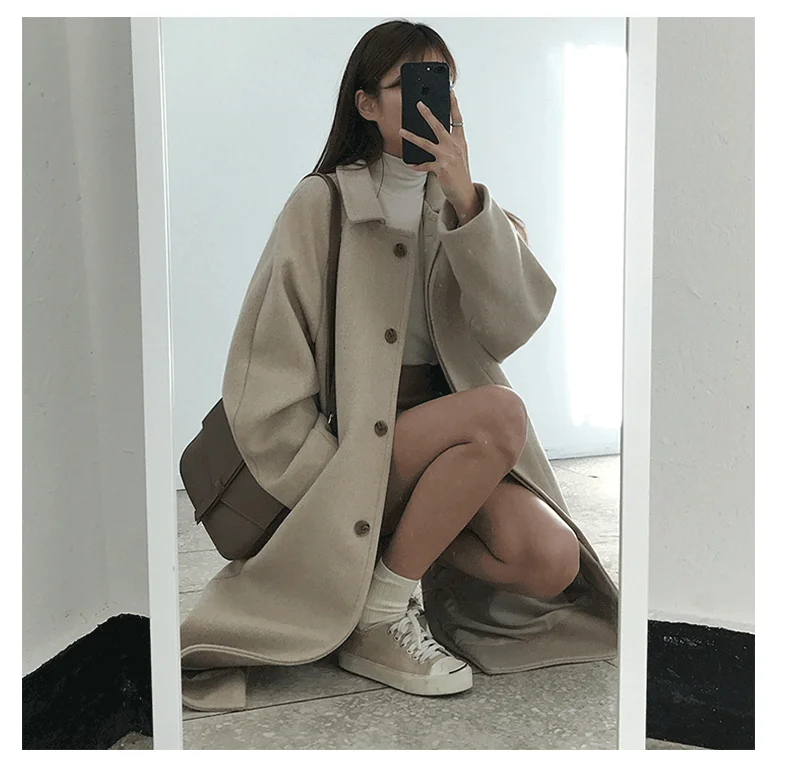 Женское шерстяное пальто Bella philosophy, простое однобортное пальто с отложным воротником, длинное, для отдыха, для осени и зимы, 2021