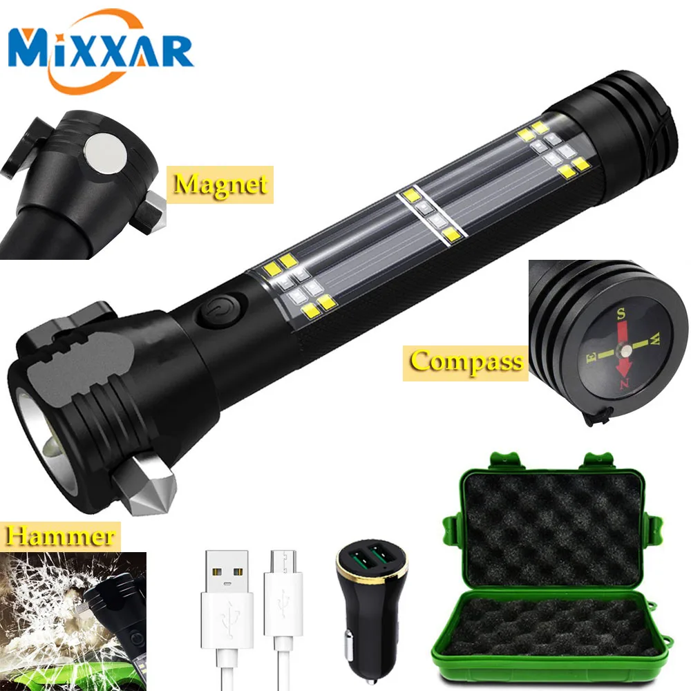 Дропшиппинг 5000 люмен Солнечный фонарик USB Перезаряжаемый Тактический Многофункциональный фонарь аварийный инструмент компаса автомобиля