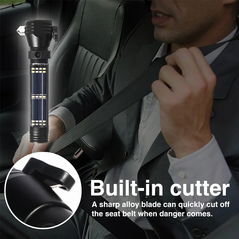 ★7 режимов работы фонарик ---Головной светильник (4-6 часов)-высокий, средний и мигающий, боковой белый светильник (4-7 часов)-высокий и средний, боковой красный светильник (6-7 часов)-мигающий и медленный мигающий; нажмите переключатель, чтобы изменить режим работы и удерживайте кнопку 1.5s изменить Рабочий СВЕТОДИОДНЫЙ.★Аварийный выход автомобиля тоже ---Характеристики с выключателем окна разбивает застрявшее окно и резак ремня безопасности, чтобы отрезать заглушенный ремень безопасности; Обеспечивает безопасный выход в чрезвычайных ситуациях, тактический светодиодный фонарик для самозащиты поможет вам выйти из самых сложных ситуаций.★Свободные руки ---С мощным магнитом сбоку на головке вспышки, светильник можно прикрепить к машине или другой металлической поверхности, чтобы использовать как рабочий светильник, лампа для кемпинга или аварийный предупреждающий светильник.★Надежный и необходимый--- Фонарик водостойкий и ударопрочный для использования при самых прочных, аварийных условиях. Он поставляется с водонепроницаемым анодированным корпусом из алюминиевого сплава, легко захватывается, хвостик с компасом для улицы; Не только для автомобильных чрезвычайных ситуаций, но и отлично подходит для работы, кемпинга, или Пешие прогулки, так как они предназначены для того, чтобы выдержать много плохого обращения.★Перезаряжаемый аварийный внешний аккумулятор ---Этот солнечный фонарик имеет встроенную батарею 18650 2000 мАч, может заряжаться с помощью прилагаемого usb-кабеля (4-5 часов) или солнечной энергии (30 часов), используйте usb-кабель для подключения телефона к фонарику и зарядки телефона для экстренной ситуации.