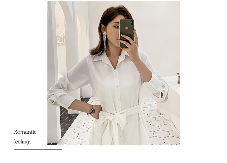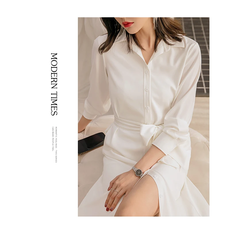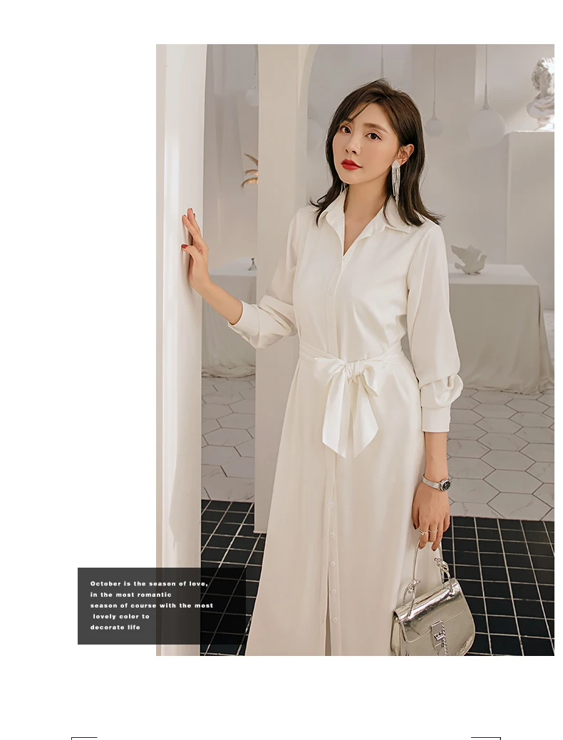 Женское платье с отложным воротником YIGELILA, белое повседневное ТРАПЕЦИЕВИДНОЕ ПЛАТЬЕ до середины икры, с рукавами-фонариками, осень 65156