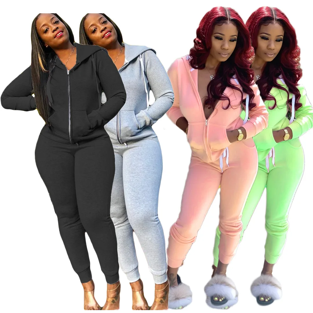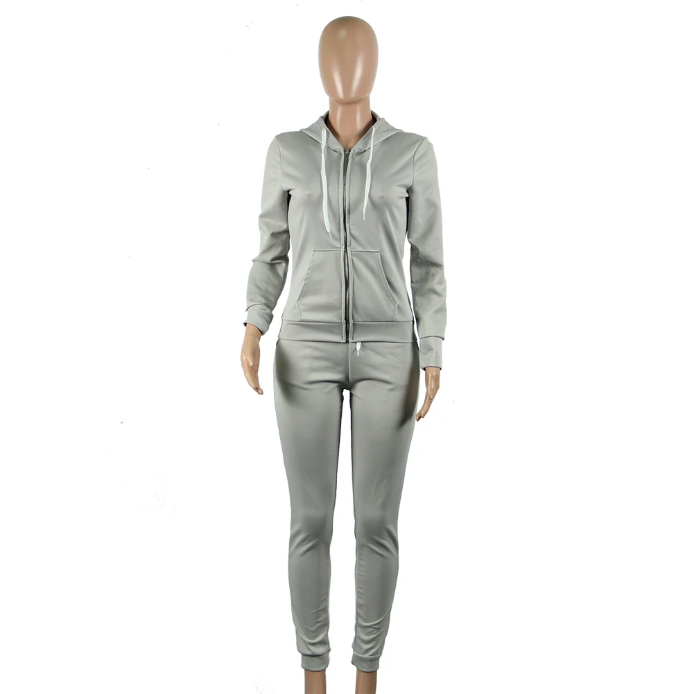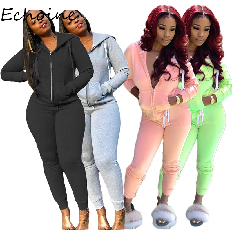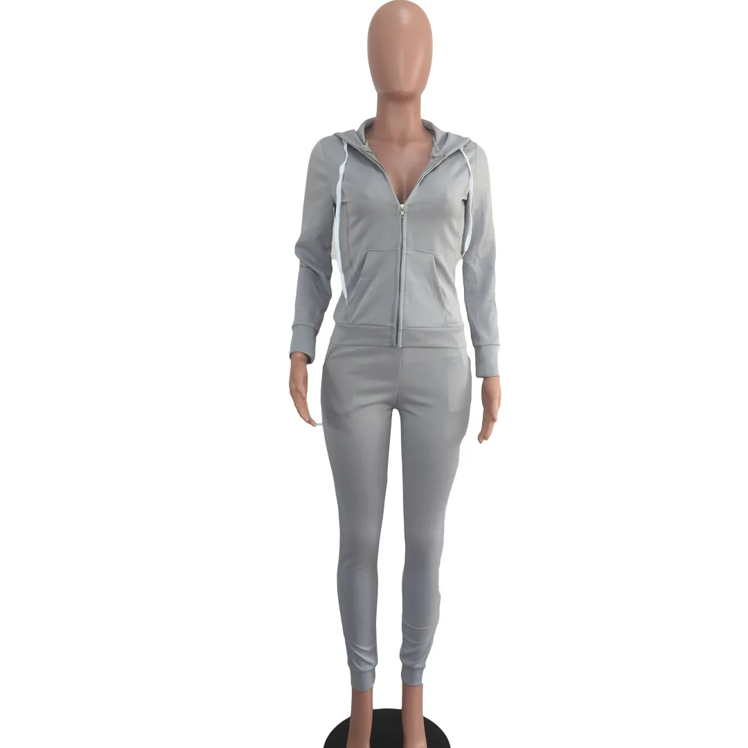 Женский спортивный костюм из двух предметов, однотонная спортивная одежда с длинным рукавом и капюшоном, комплект из двух предметов, пальто и длинные штаны, одежда для клуба, весна 2020