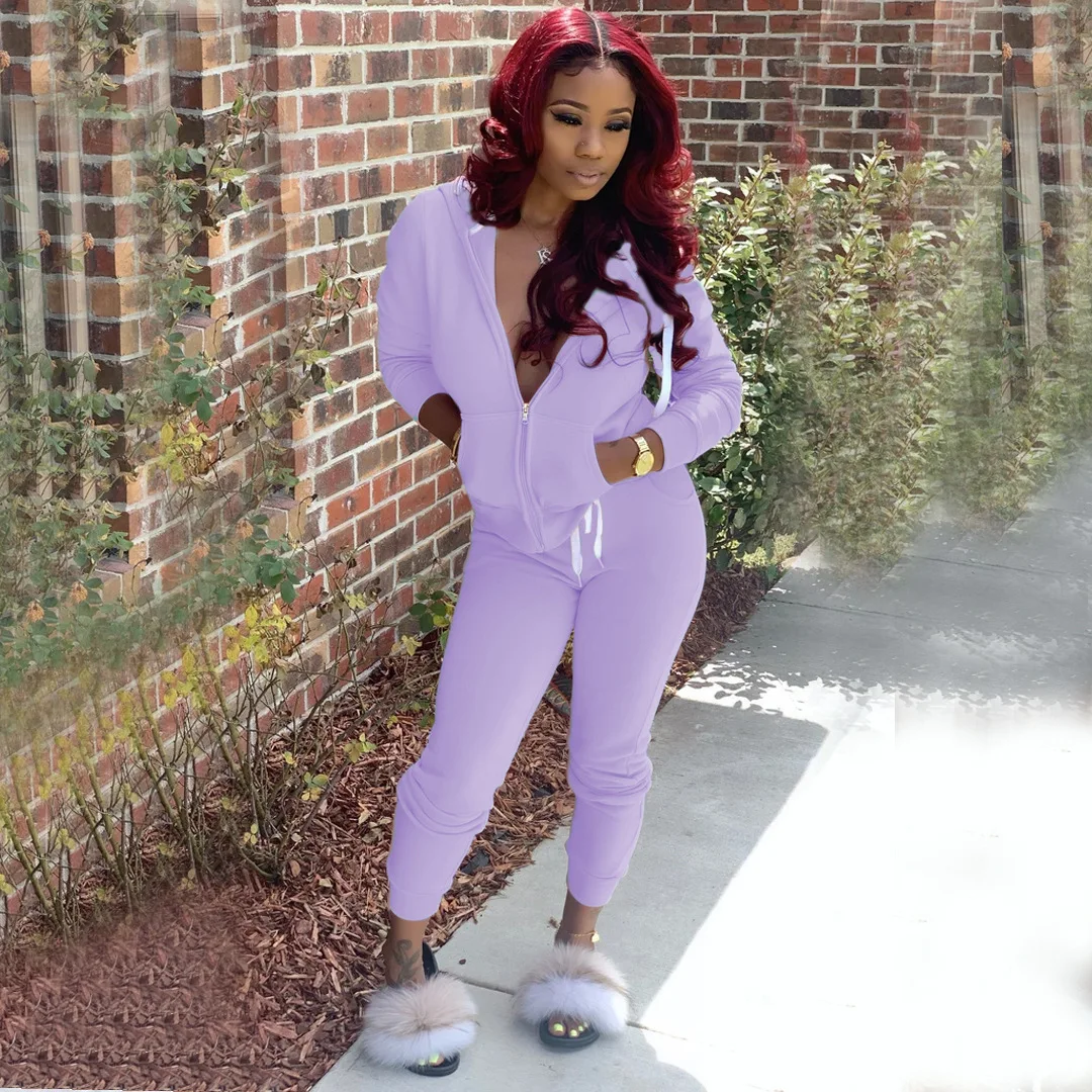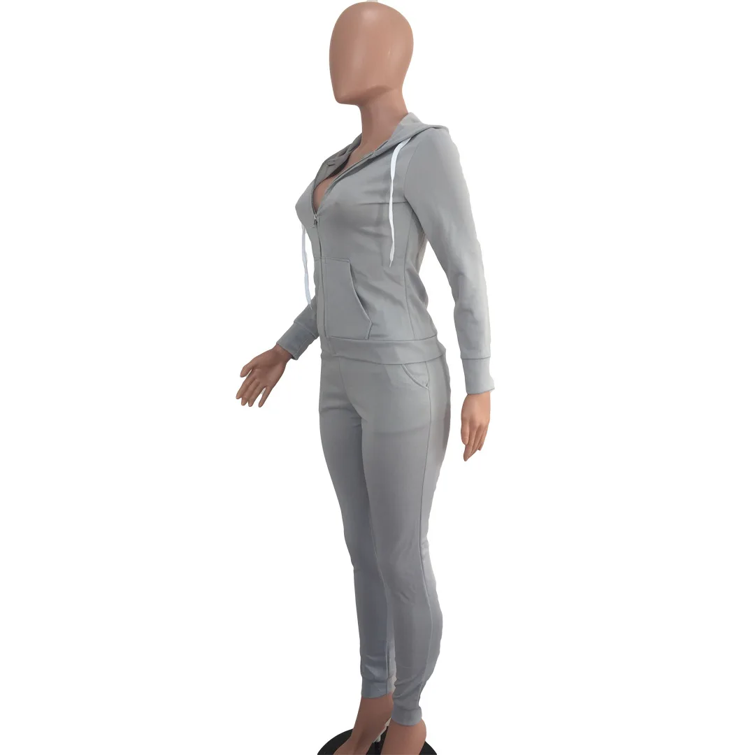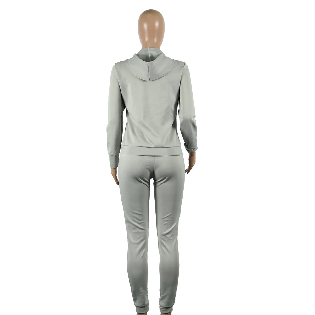Женский спортивный костюм из двух предметов, однотонная спортивная одежда с длинным рукавом и капюшоном, комплект из двух предметов, пальто и длинные штаны, одежда для клуба, весна 2020
