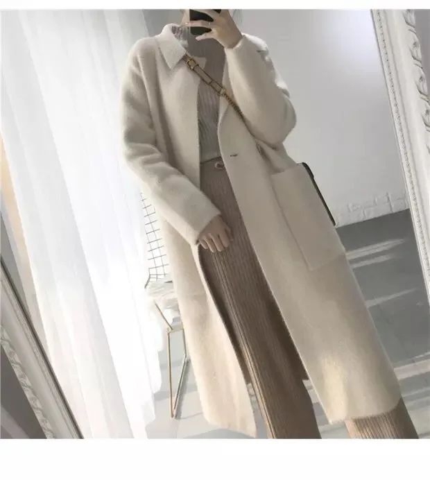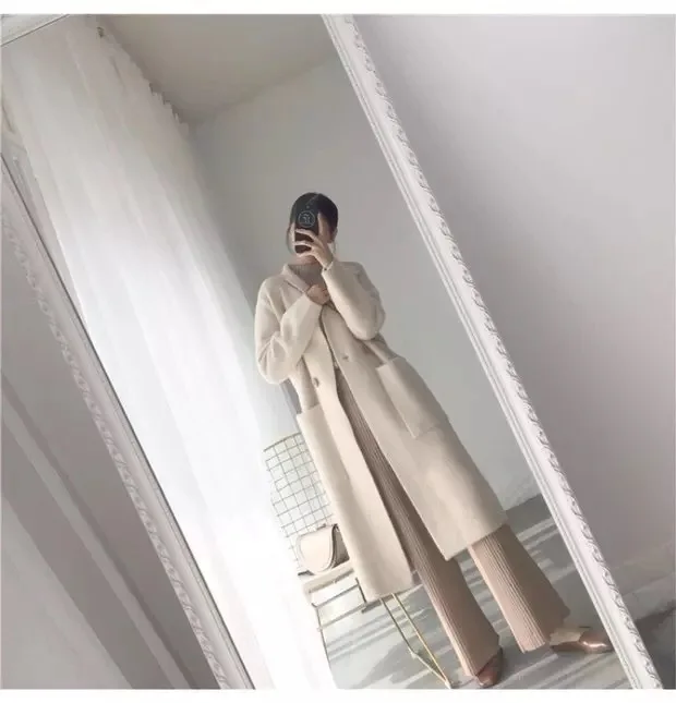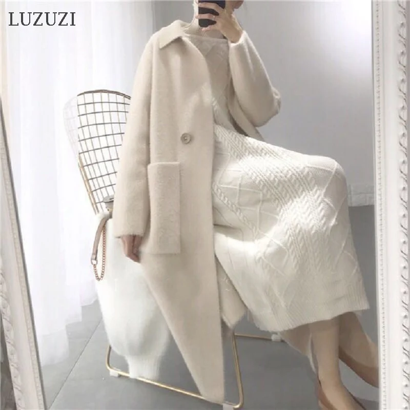 Женское шерстяное пальто LUZUZI, элегантное винтажное бархатное пальто, свободный плотный длинный тонкий кардиган, кашемировое пальто, Осень-зима 2019