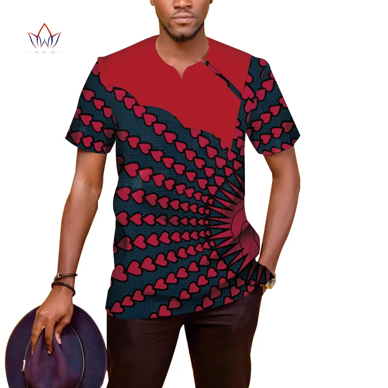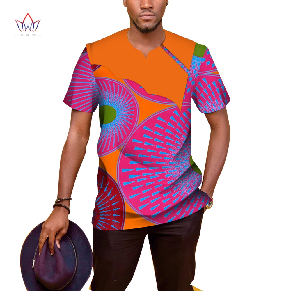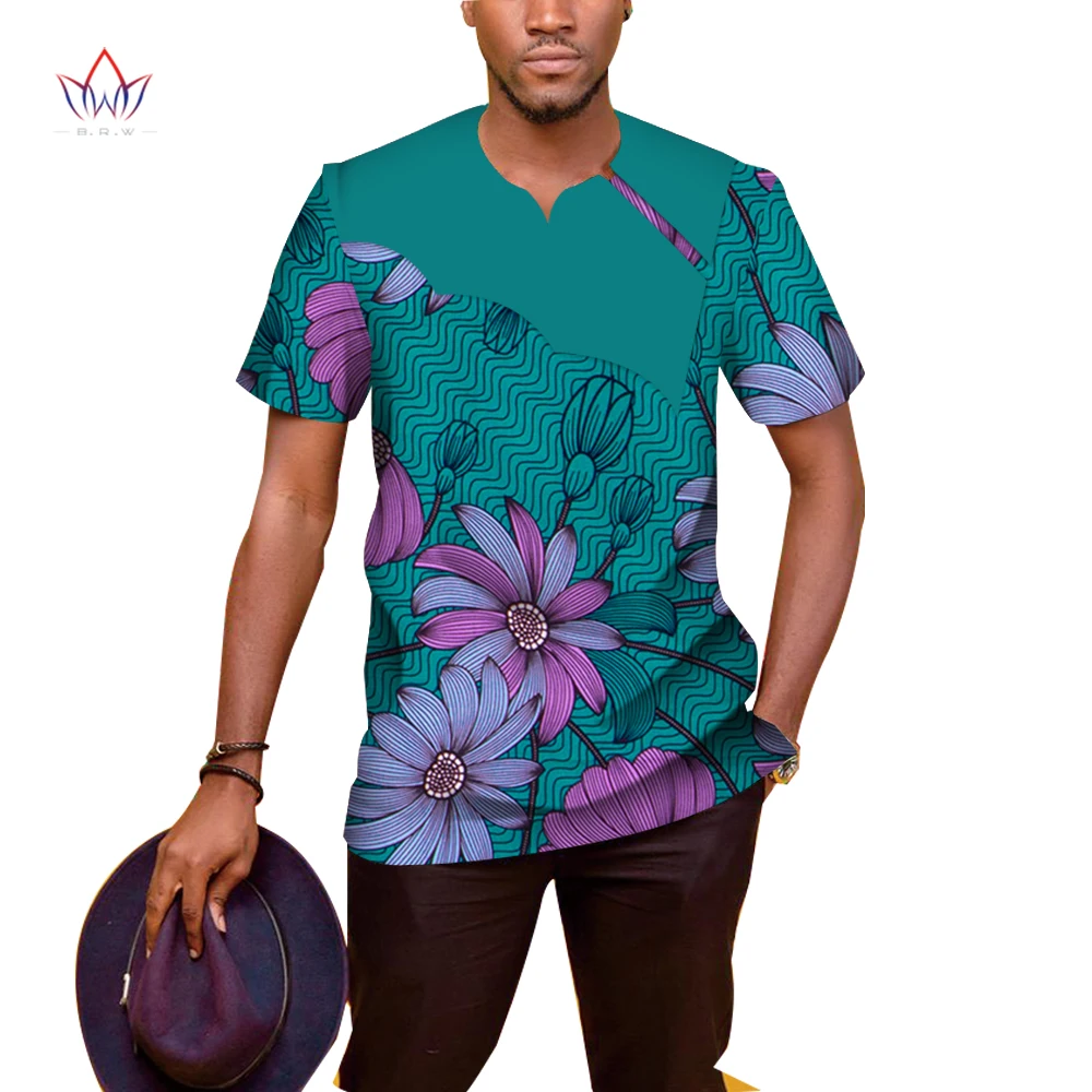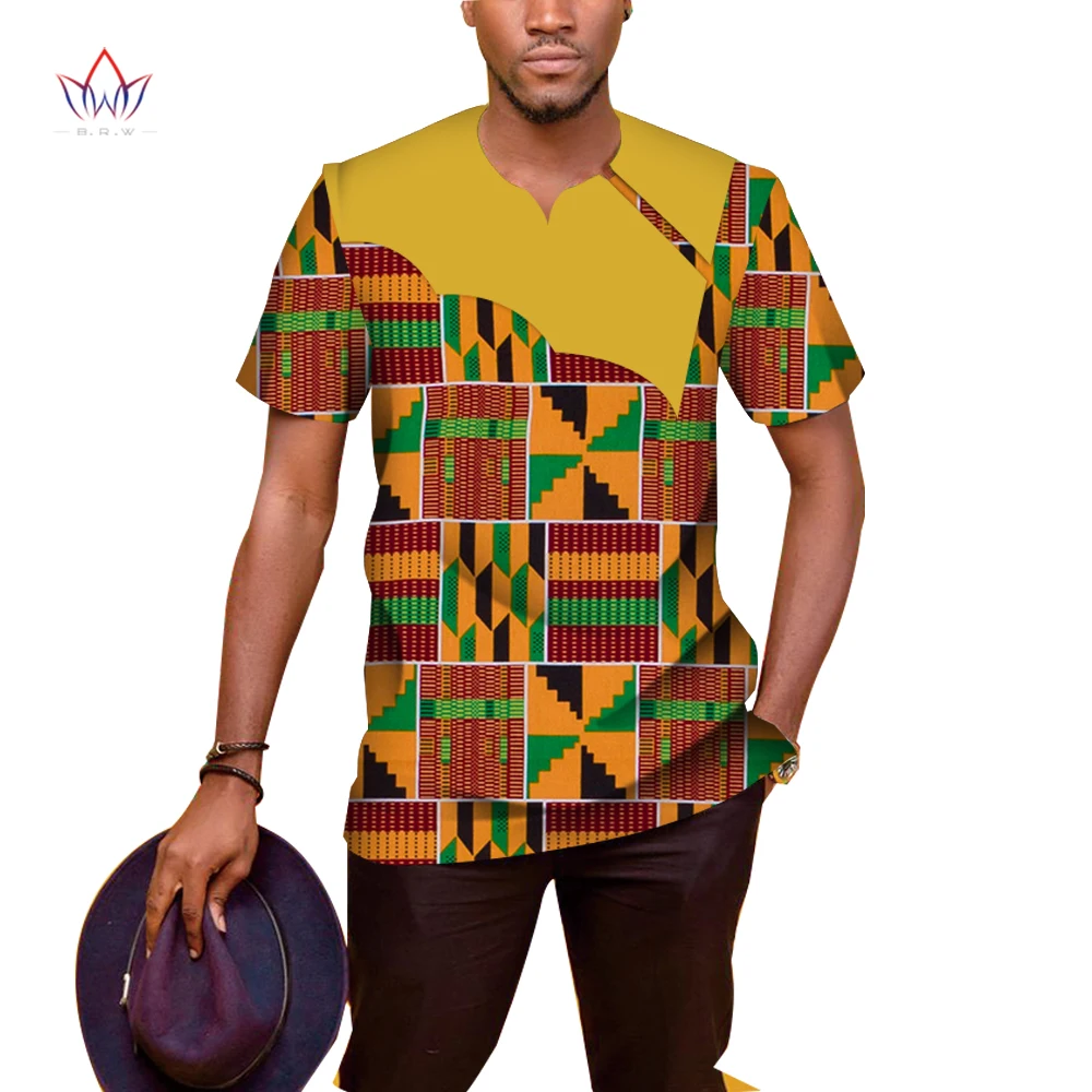 Мужские лоскутные футболки, африканская Мужская одежда, Bazin Riche, африканская Мужская одежда, повседневная Хлопковая мужская рубашка с коротким рукавом, WYN975