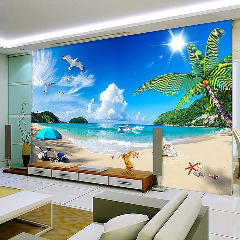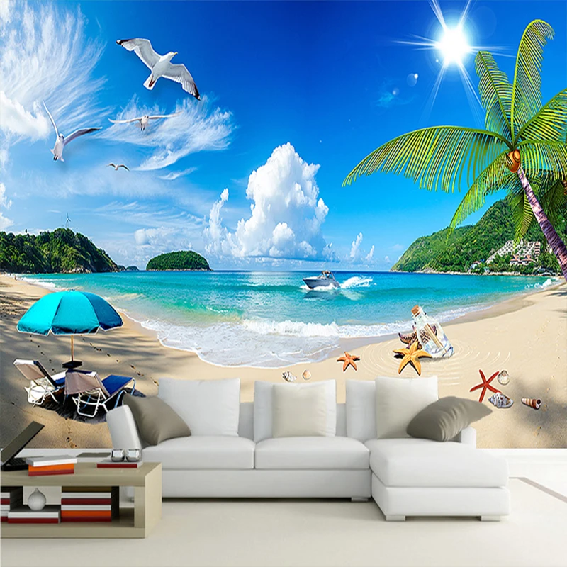 3D настенная бумага, современное синее небо, белые облака, пляж, морской пейзаж, Настенная роспись для гостиной, спальни, украшение, фотобумага, настенная живопись
