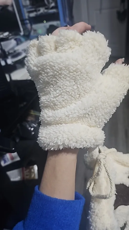 Пушистая лапа перчатки без пальцев, теплые мягкие плюшевые перчатки...