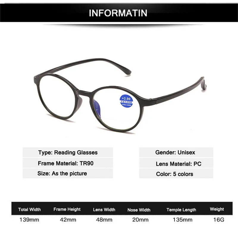 Очки для чтения унисекс iboode, круглые ультралегкие очки для коррекции пресбиопии, с диоптриями от + синий луч света до 1,0, TR90, 4,0
