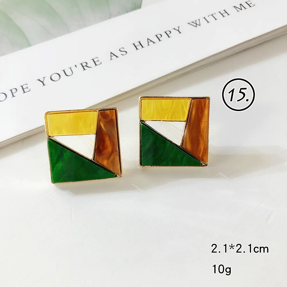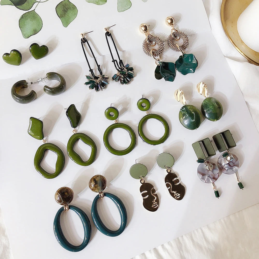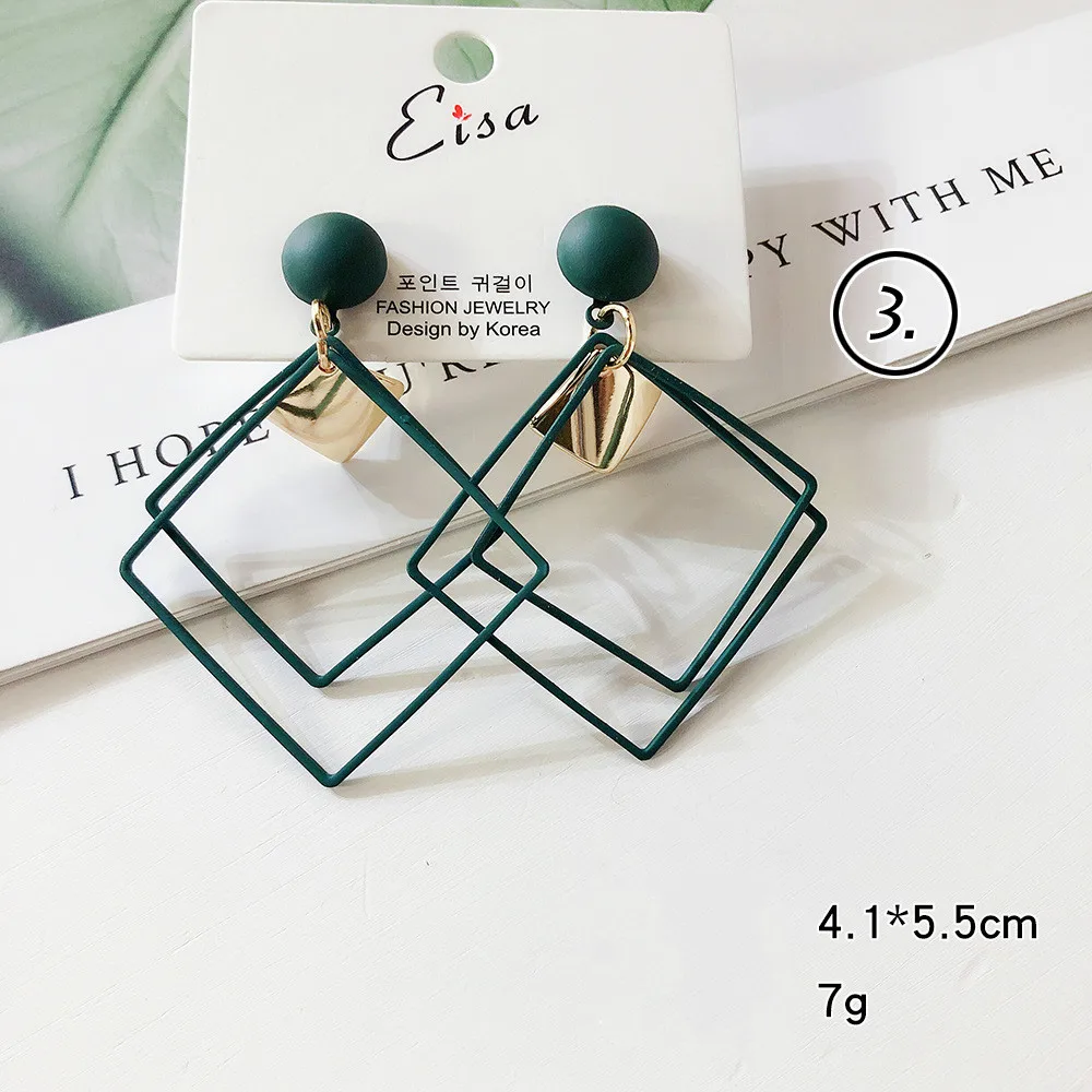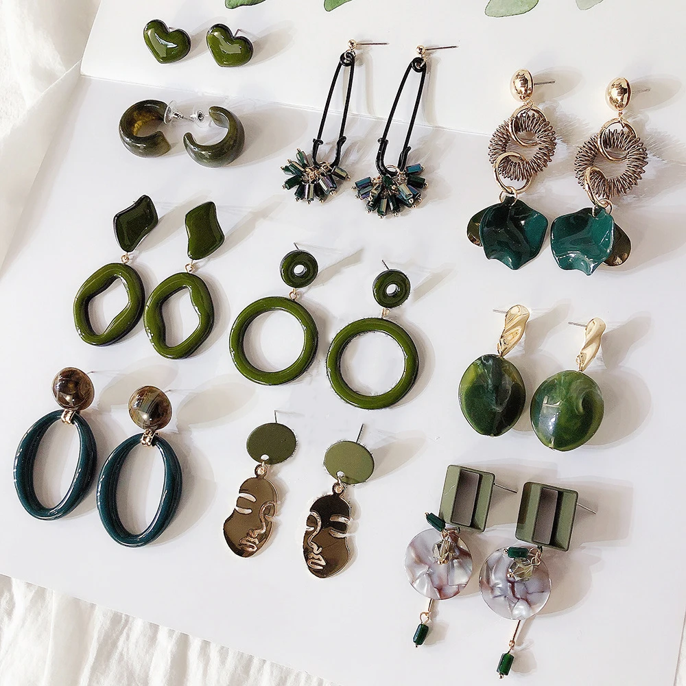 Модные украшения, зеленые геометрические акриловые деревянные нестандартные полые круглые квадратные висячие серьги, металлические висячие серьги, женские Украшения