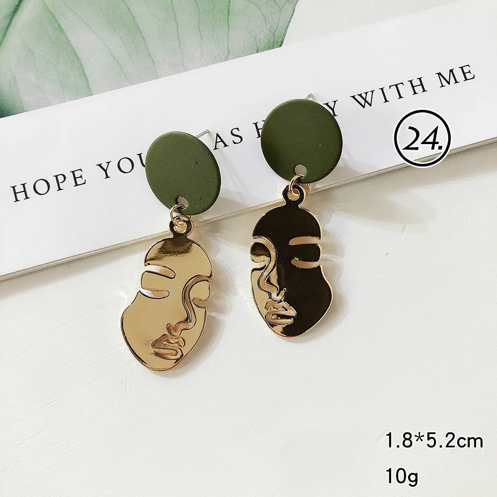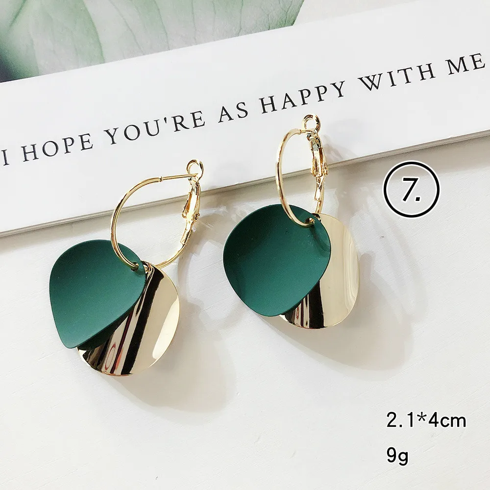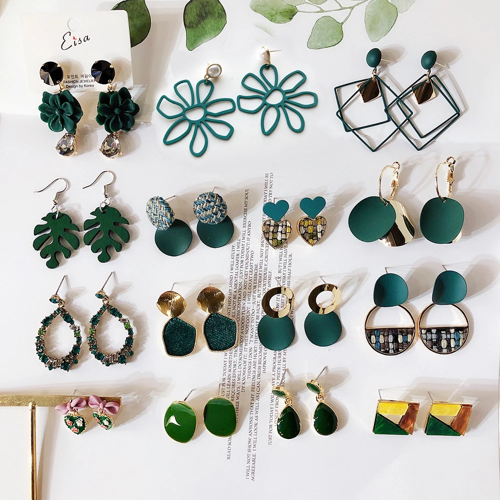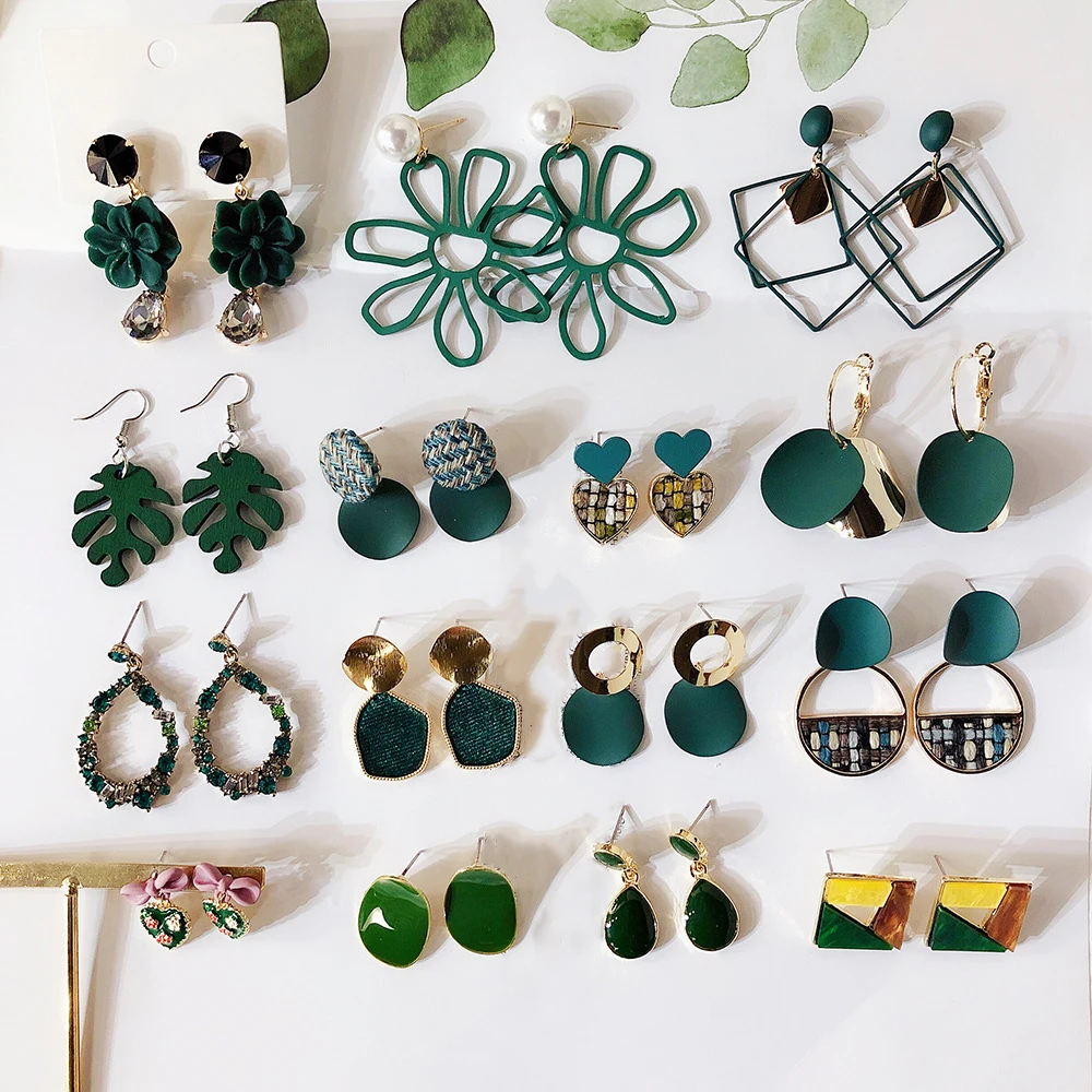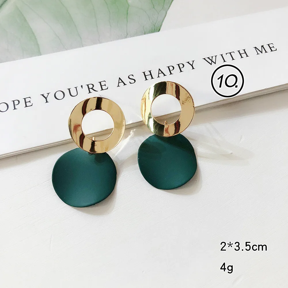 Модные украшения, зеленые геометрические акриловые деревянные нестандартные полые круглые квадратные висячие серьги, металлические висячие серьги, женские Украшения