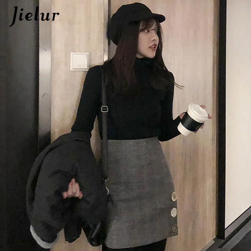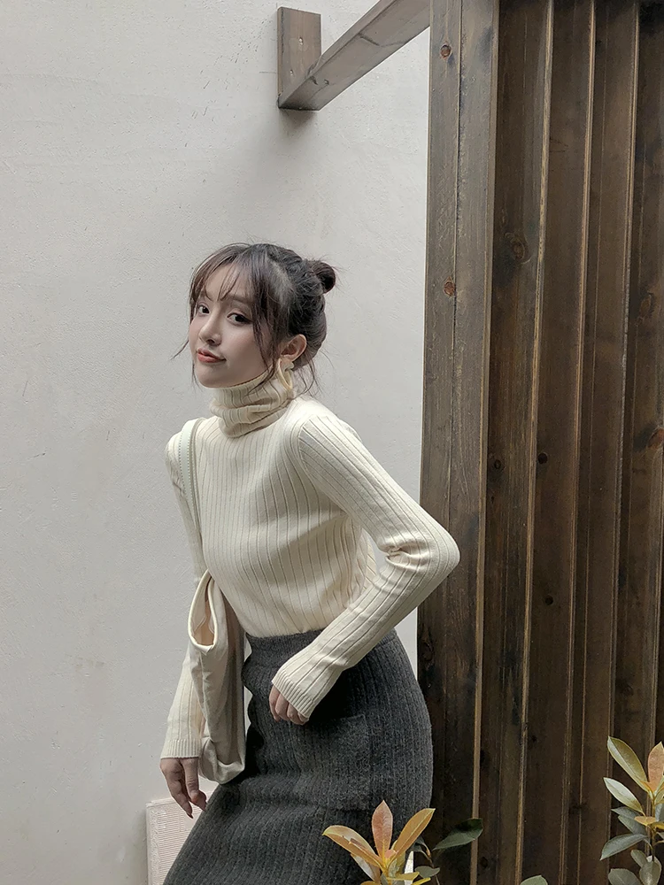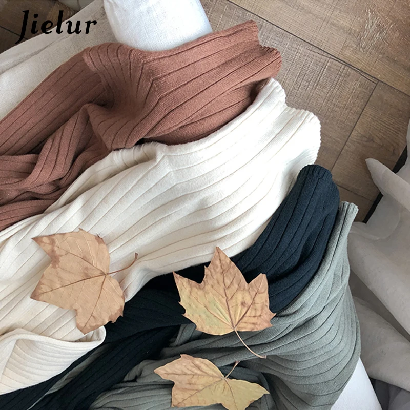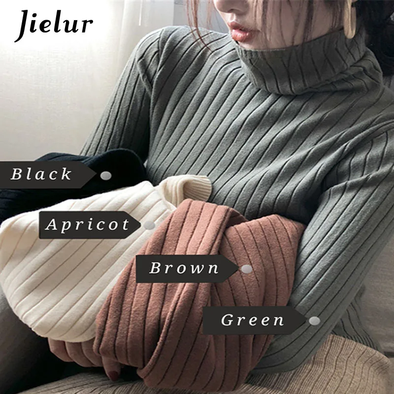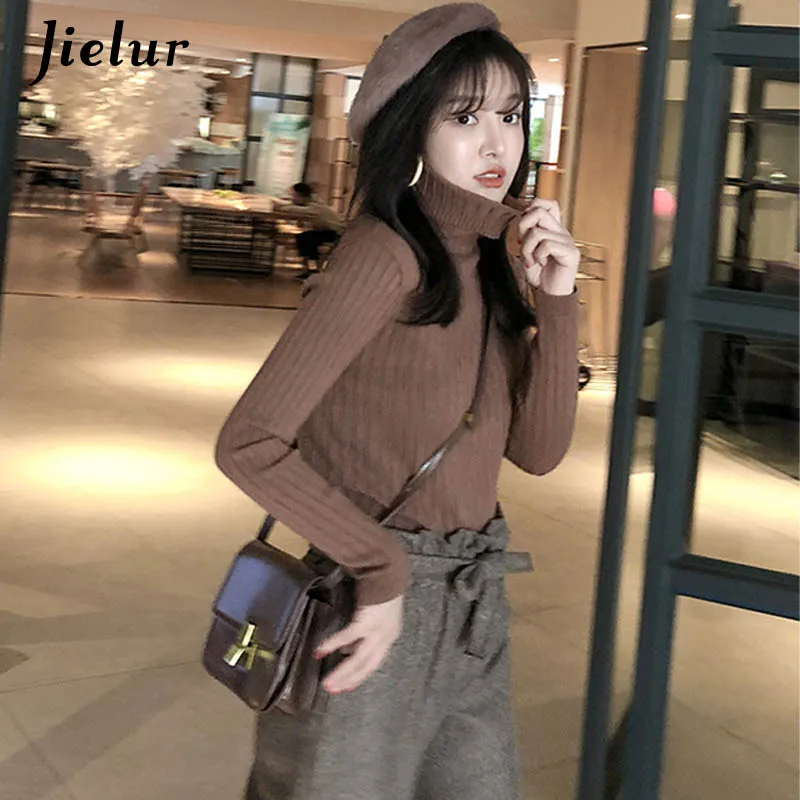 Базовый свитер Jielur с высоким воротником Женская Осенняя НОВАЯ шикарная универсальная однотонная простая облегающая Милая зимняя одежда с длинными рукавами