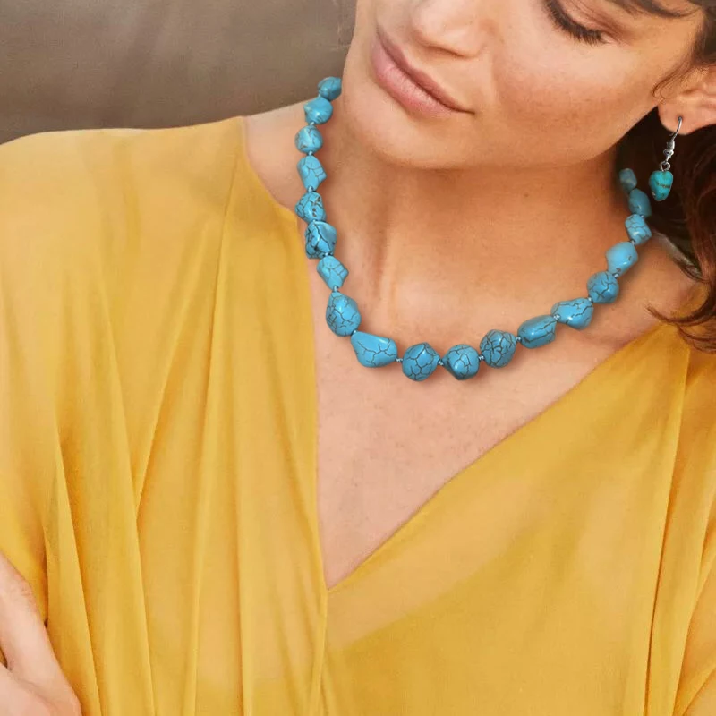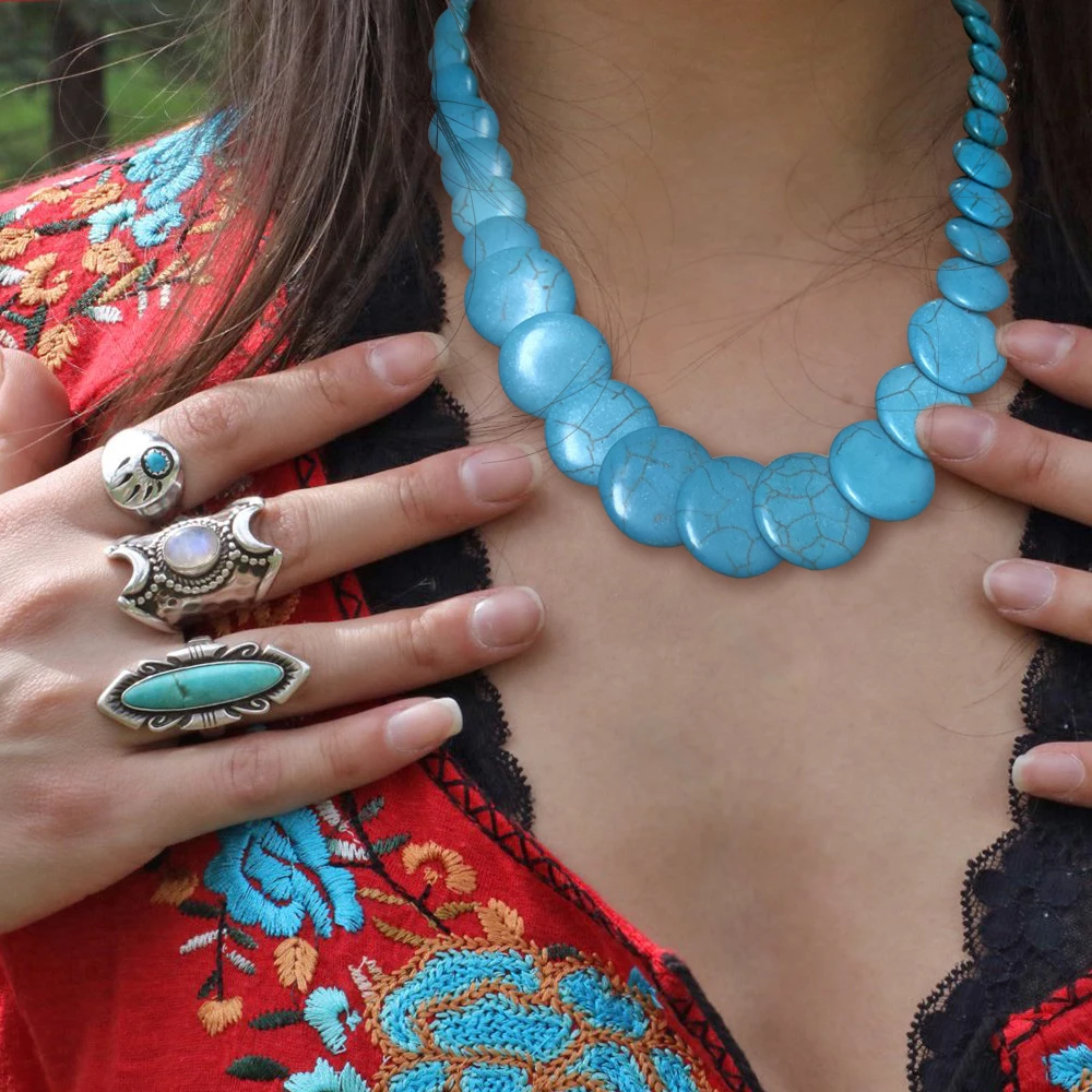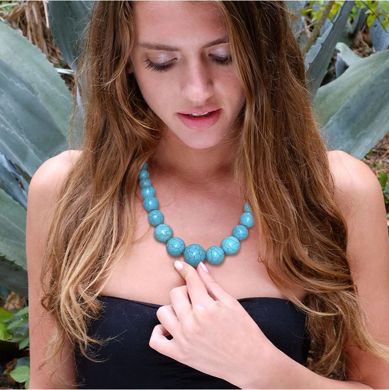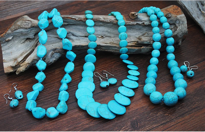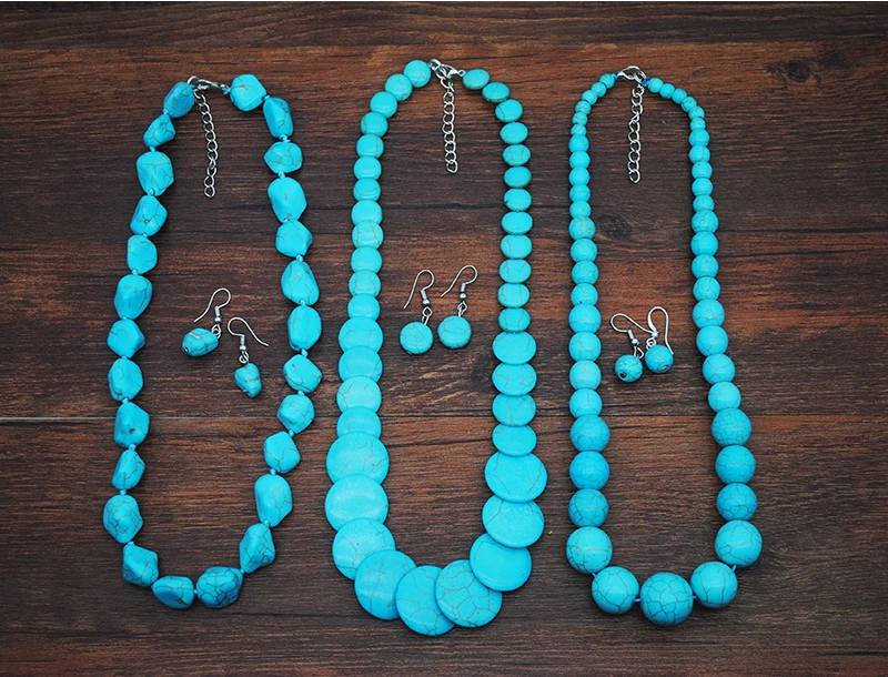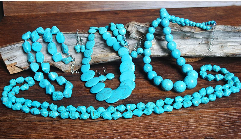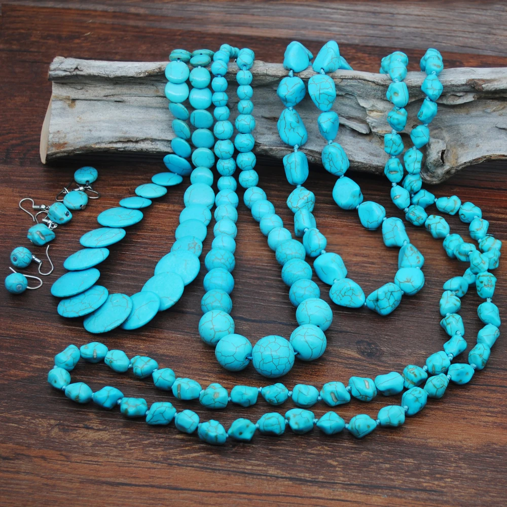 Комплект ювелирных изделий Yumfeel с синим камнем, круглые ожерелье и серьги ручной работы, подарок для женщин