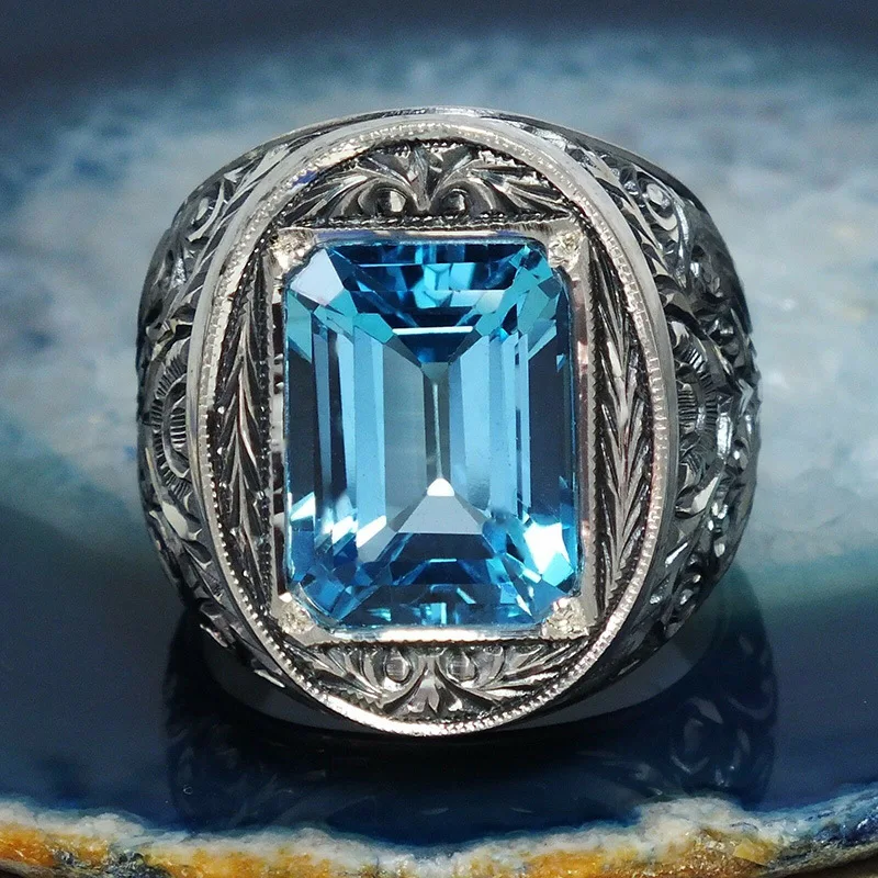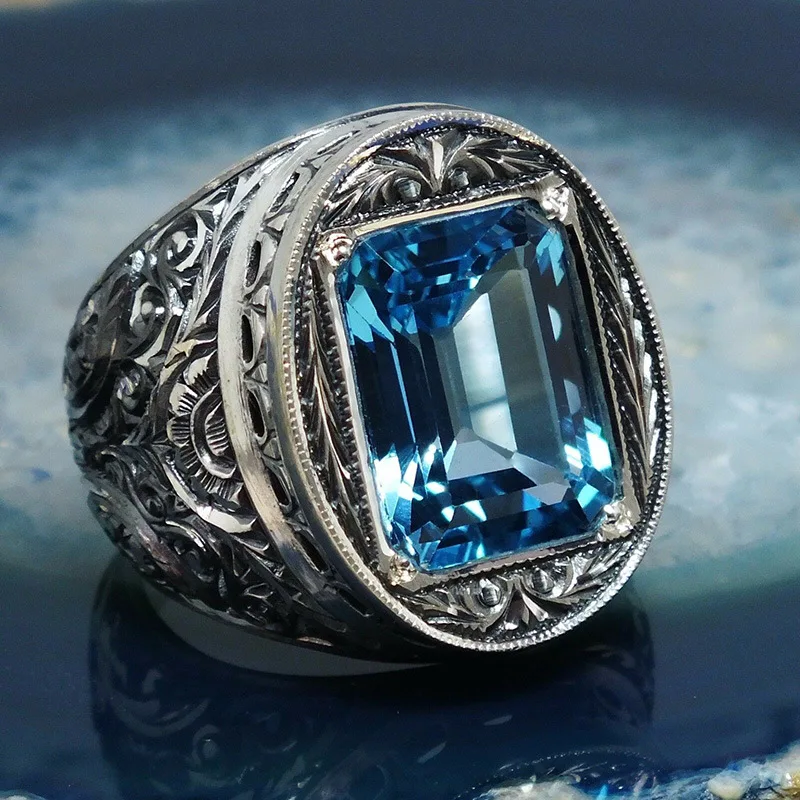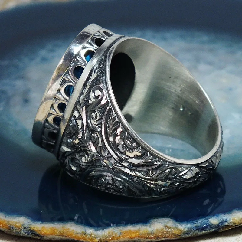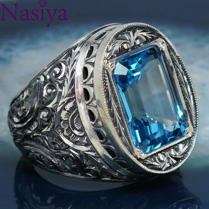 Винтажное резное кольцо с синим кристаллом, роскошное драгоценности из серебра и камней для мужчин и женщин, подарок на день рождения на годовщину
