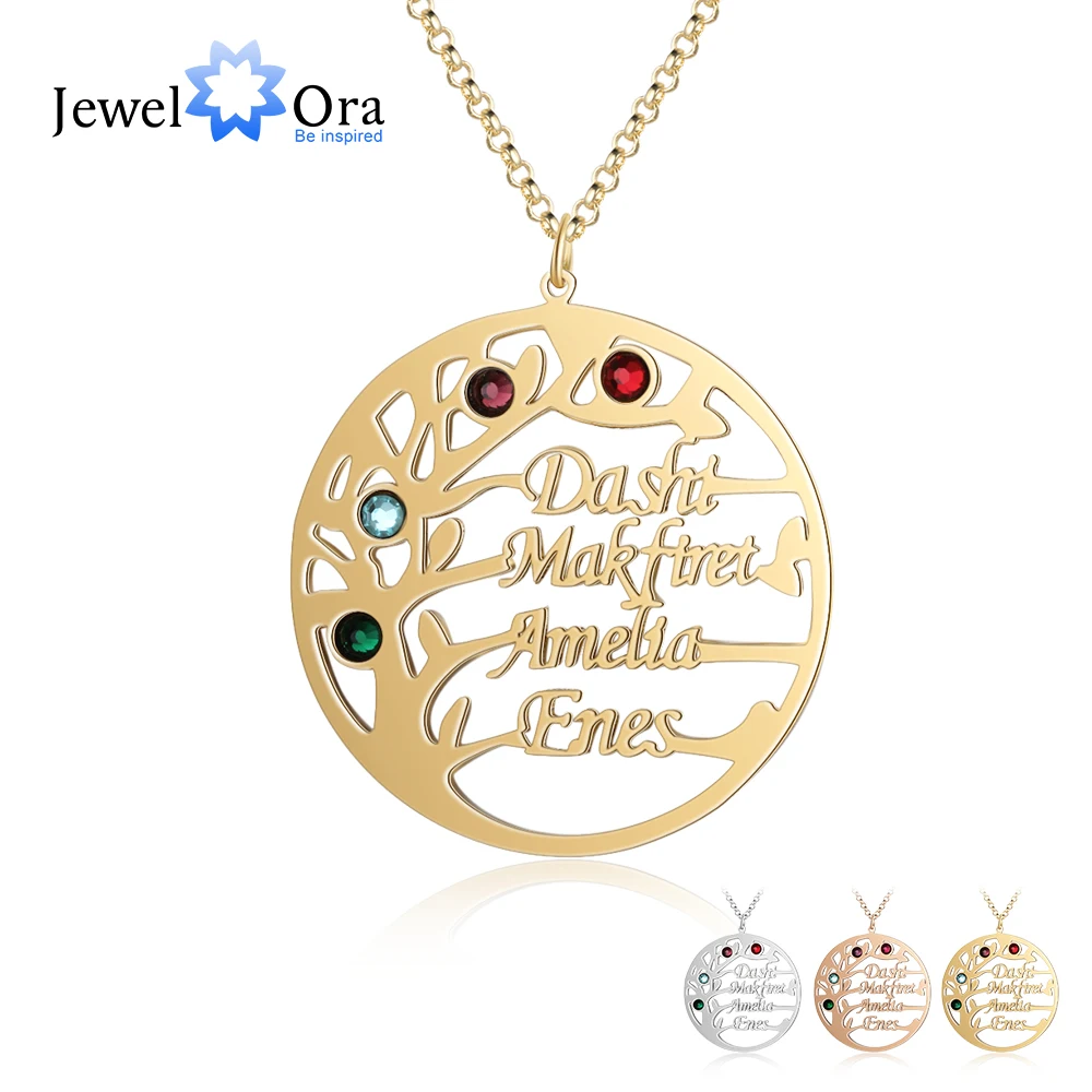 Ожерелье с генеалогическим деревом на заказ, 4 камня, цвет золоторозовое золото, ожерелье с именем на заказ, ювелирные изделия, подарки BFF (NE103792)