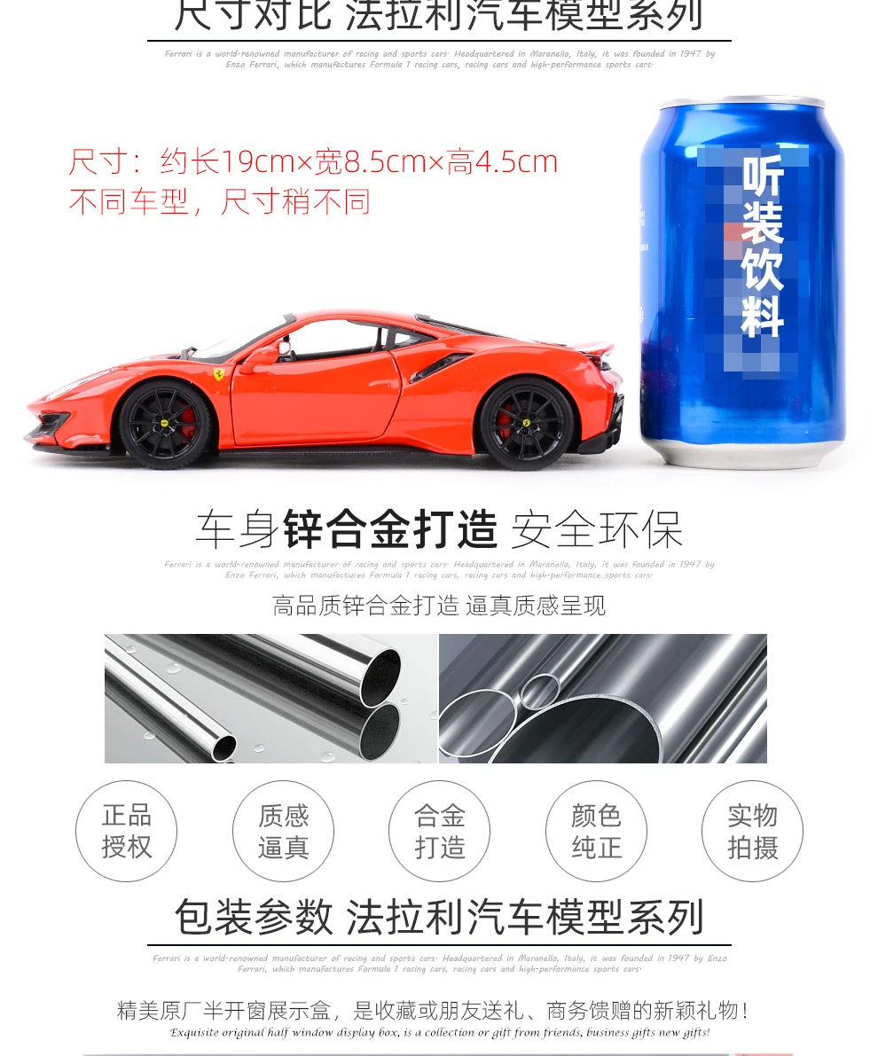 Bburago 1:24 Ferrari 488 GTB спортивный автомобиль, статические литые автомобили, Коллекционная модель автомобиля, игрушки
