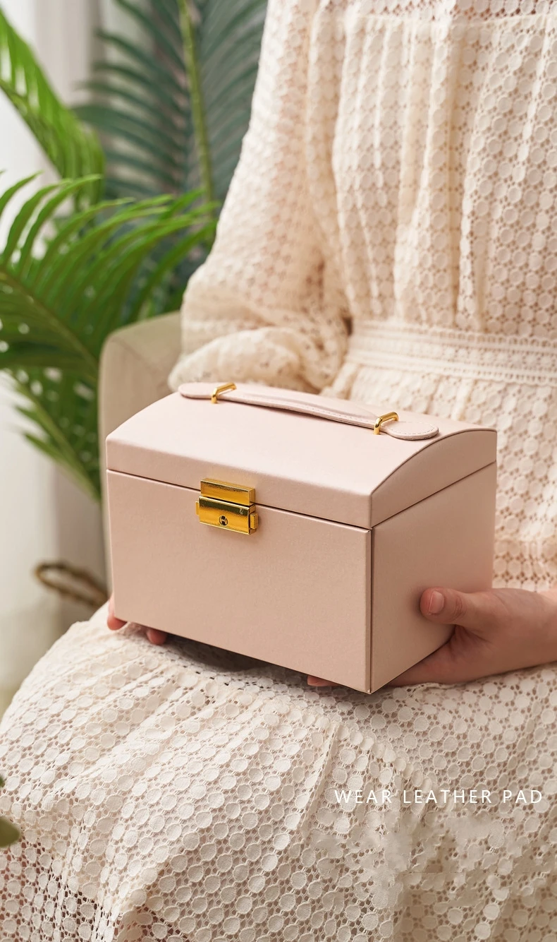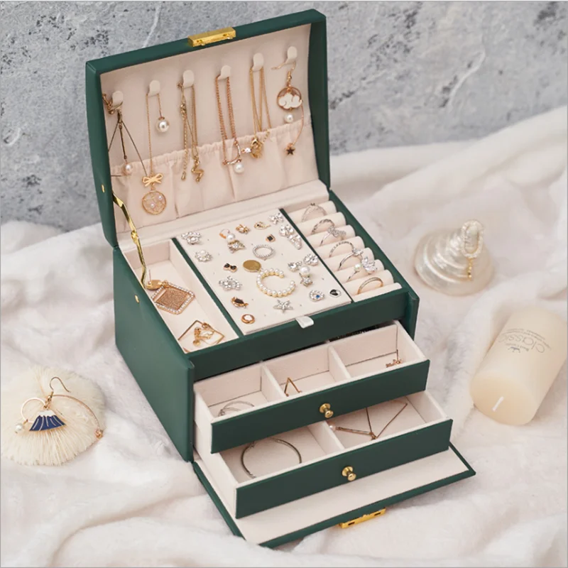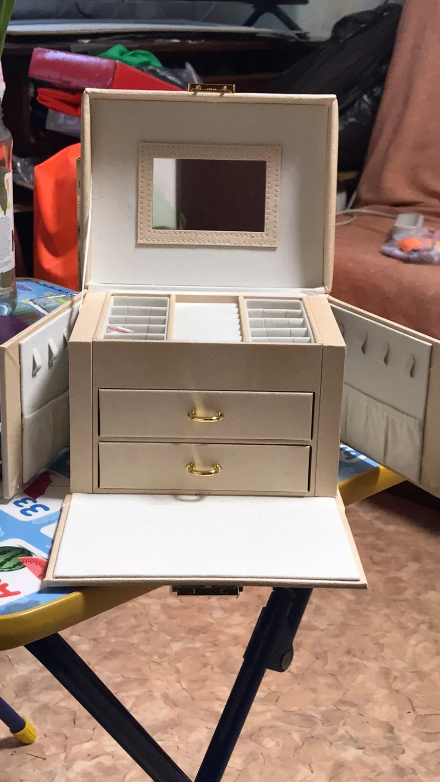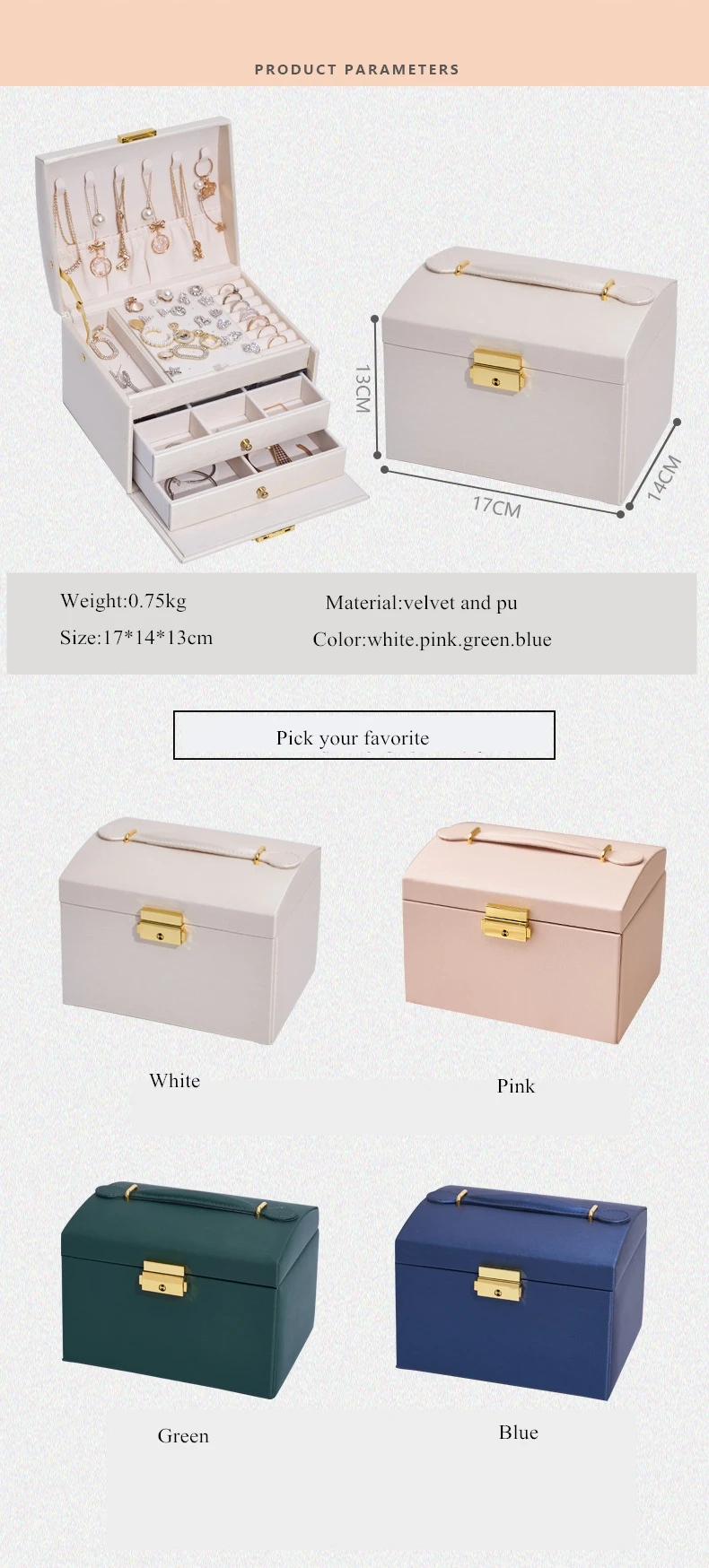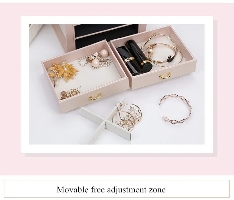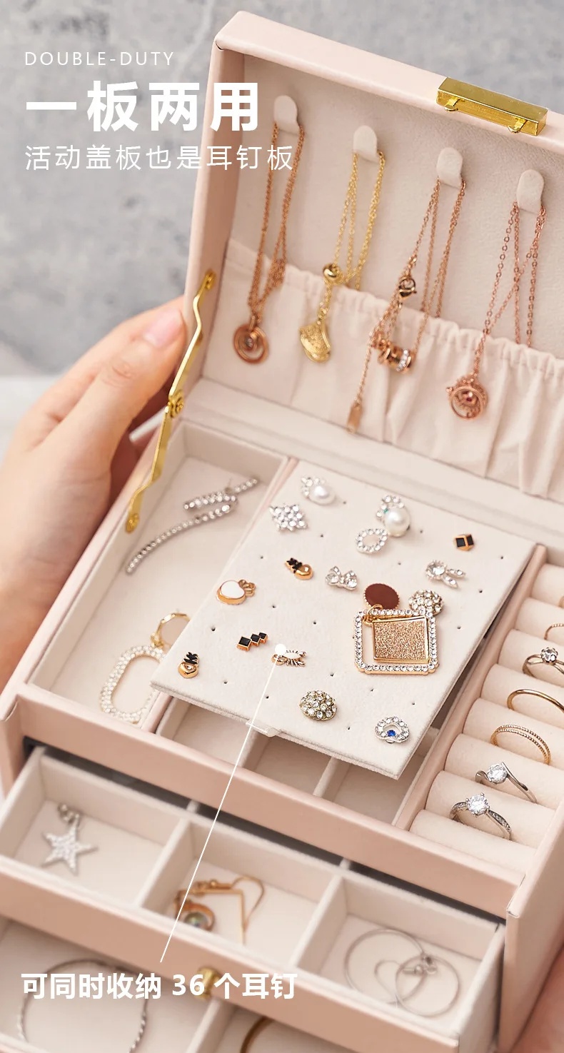 Шкатулка для хранения ювелирных изделий, трехуровневая, с зеркалом, портативная, для хранения шелковых нитей, сережек-гвоздиков, колец, шкатулка для драгоценностей, 2021